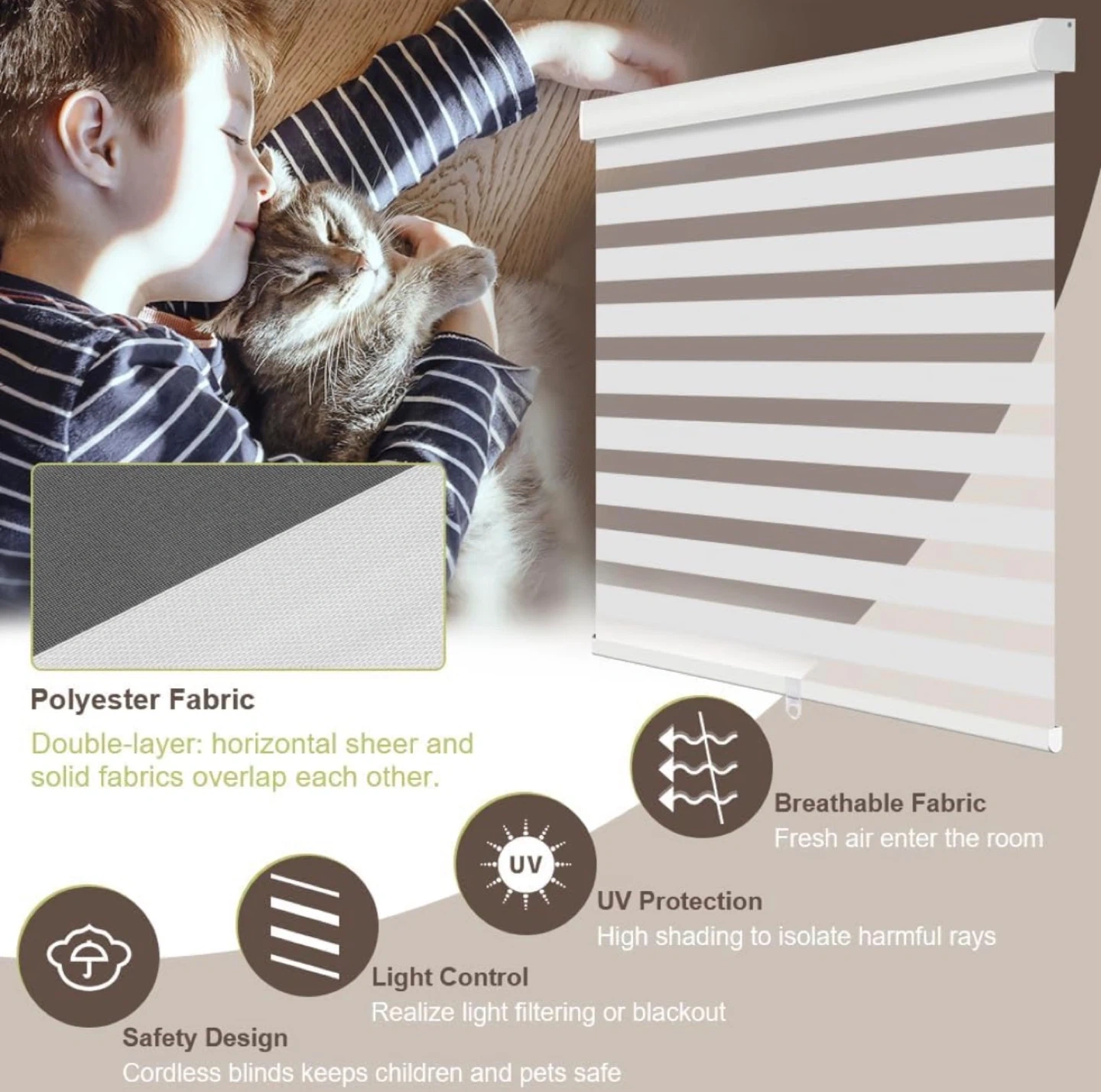 NEW 2X Cordless Zebra Blinds, 70” W x 72” H