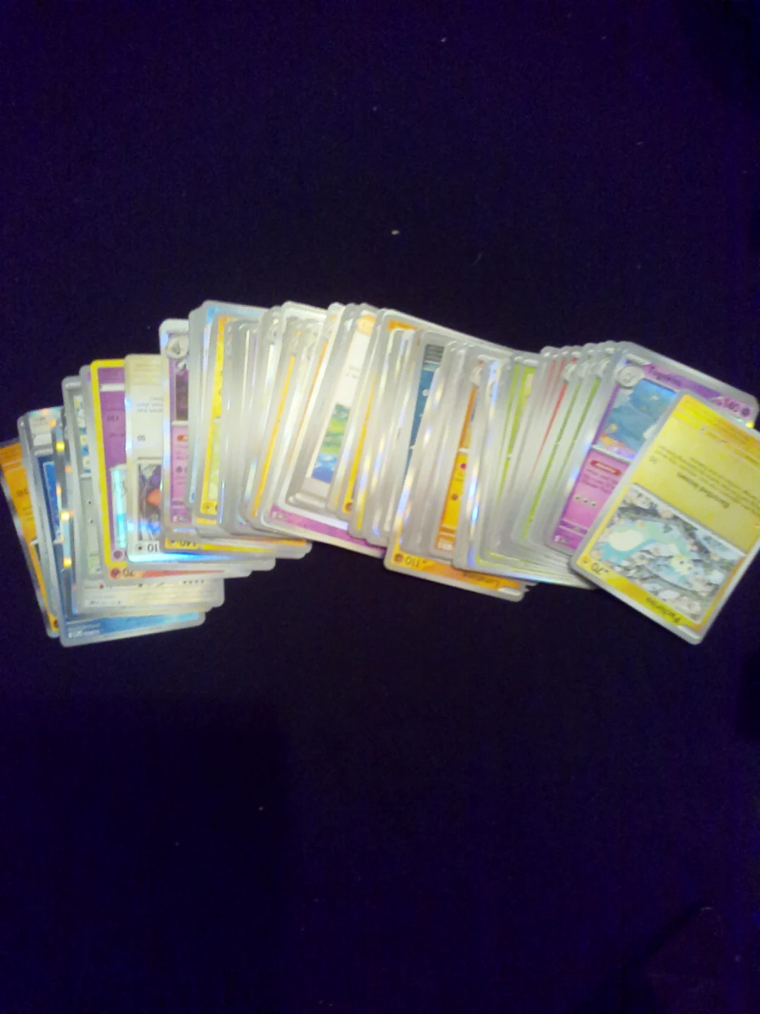 Collection of various Pokemon trading cards, some in protective sleeves. Includes various Pokemon and energy types. A great addition for any trainer! All cards are meant mostly from prismatic evolution fantasmal flames and journey together all cars are hollow over 150 all together mint condition