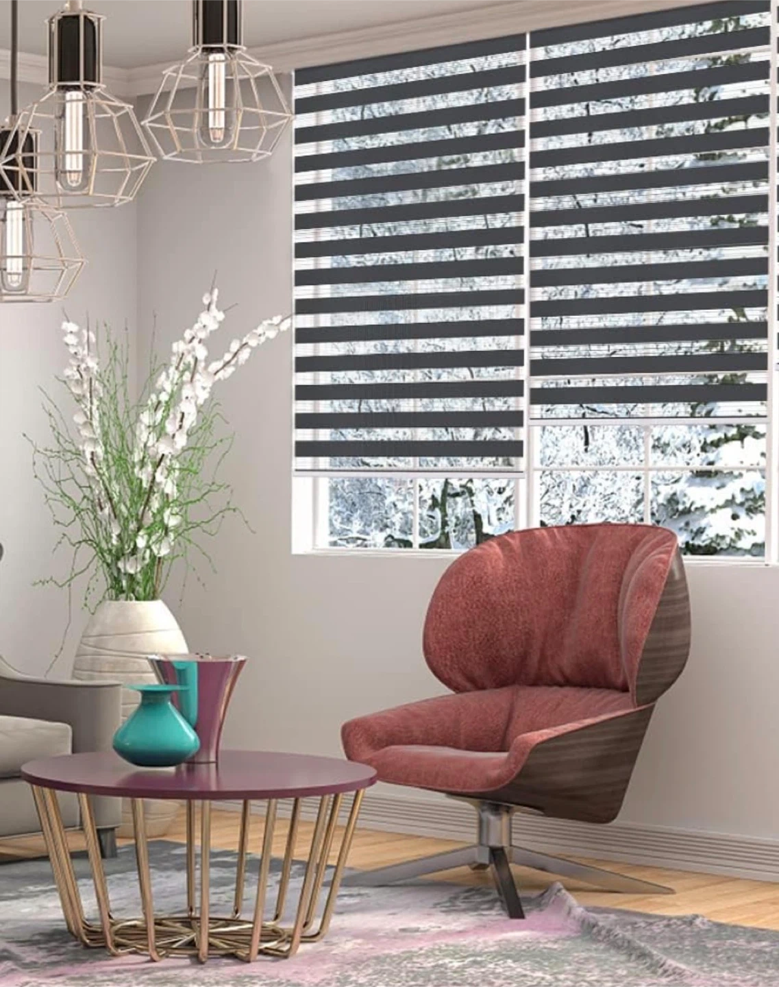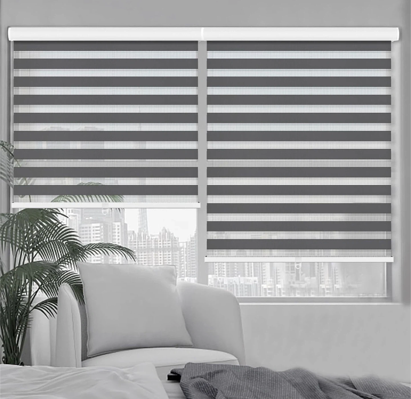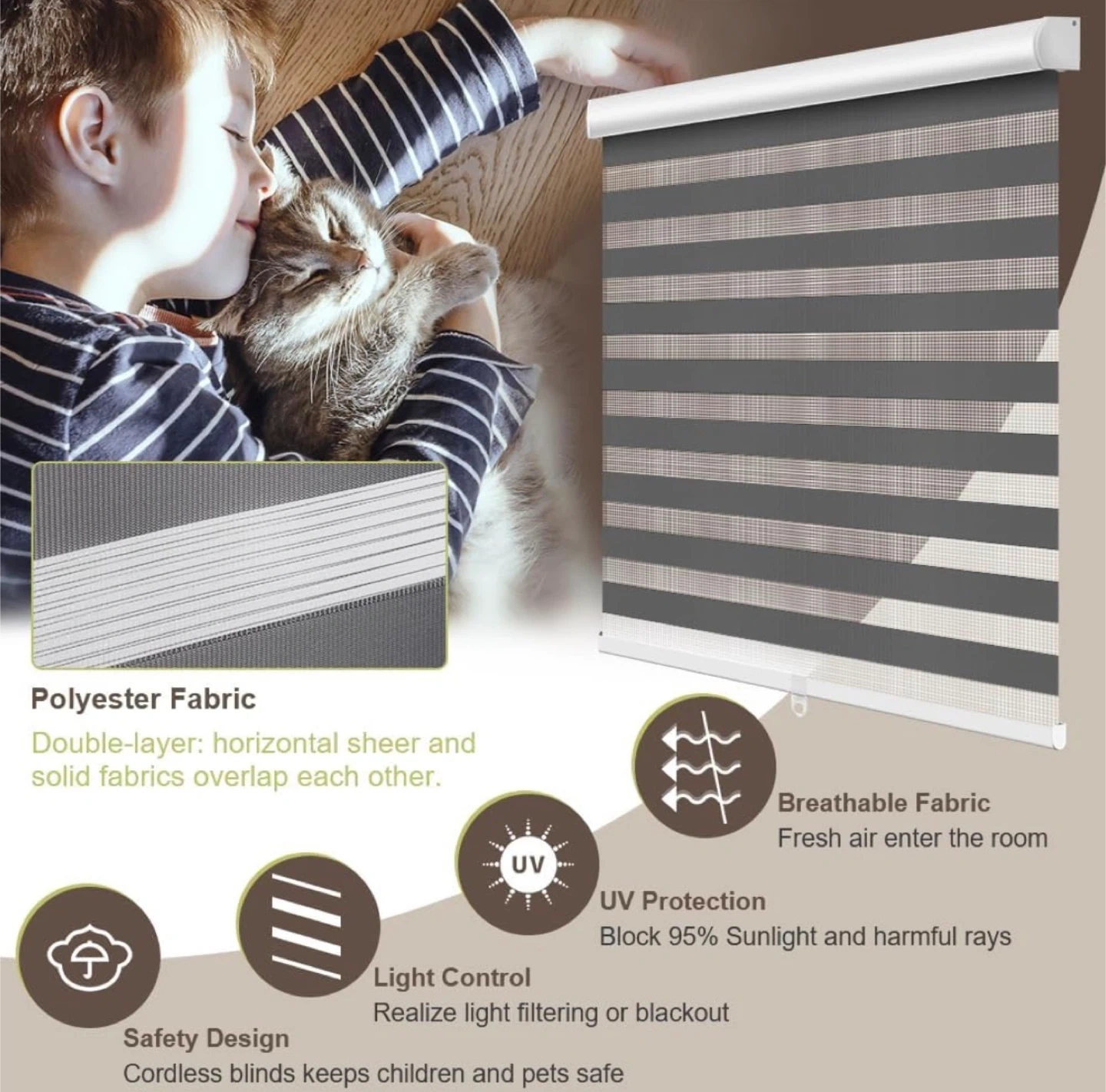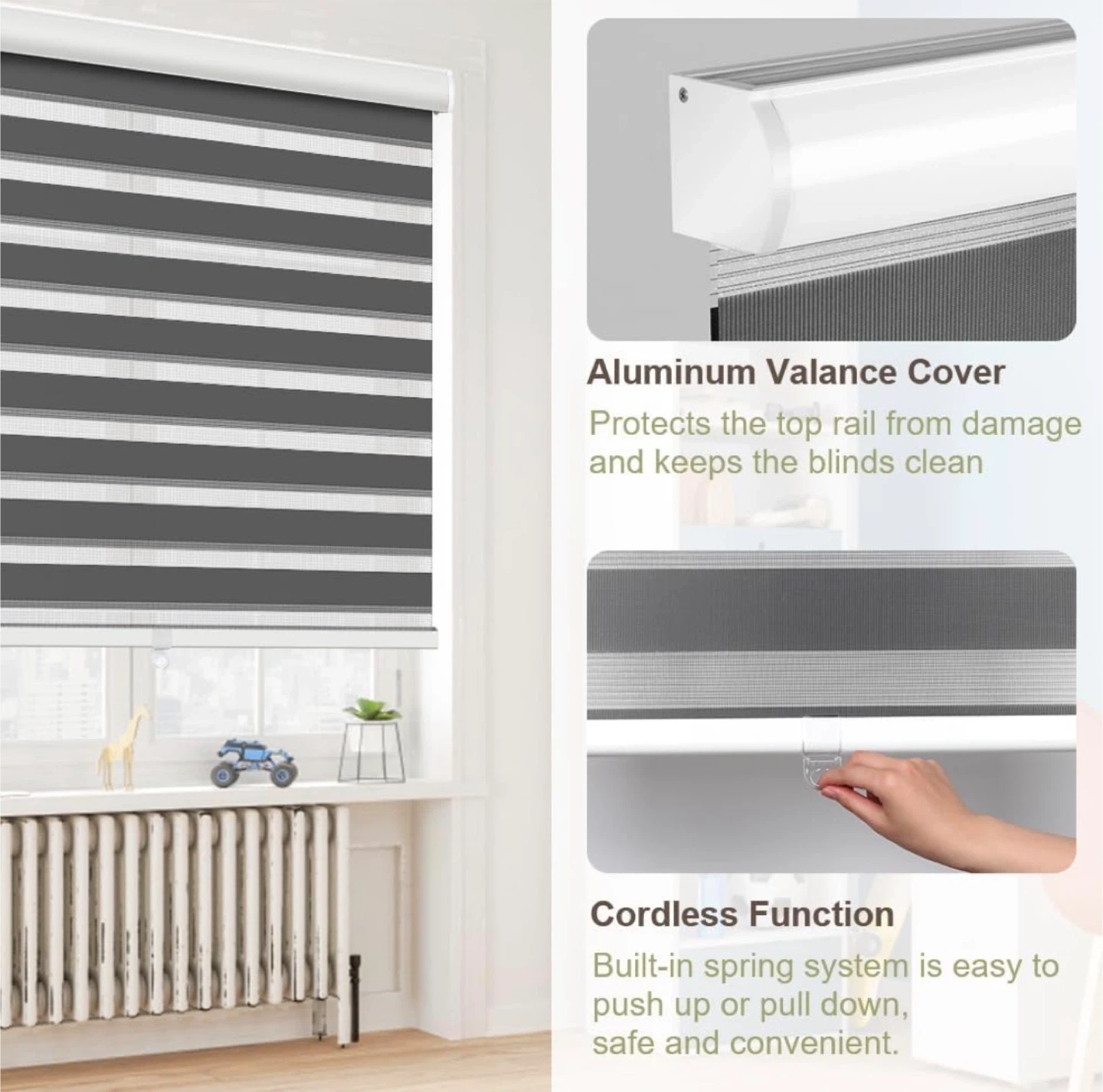 NEW Cordless Zebra Blind, 55” W x 72” H, Dark Grey