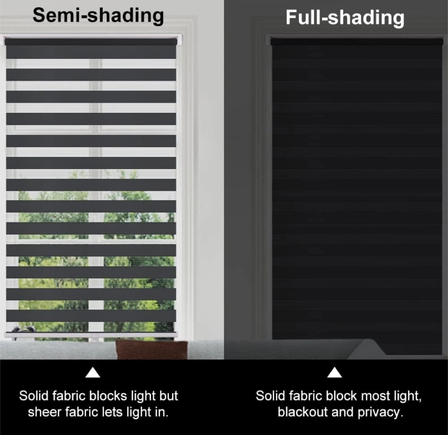 NEW Cordless Zebra Blind, 55” W x 72” H, Dark Grey