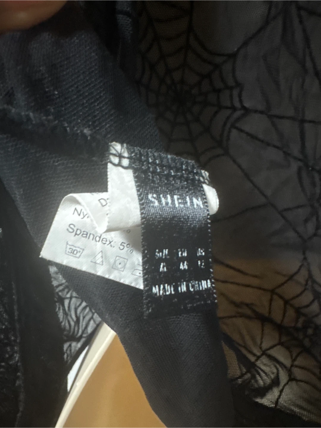This black mesh bodysuit features a spooky spiderweb design. It's made with Nylon and Spandex for a stretchy fit. Perfect for Halloween or a themed party!