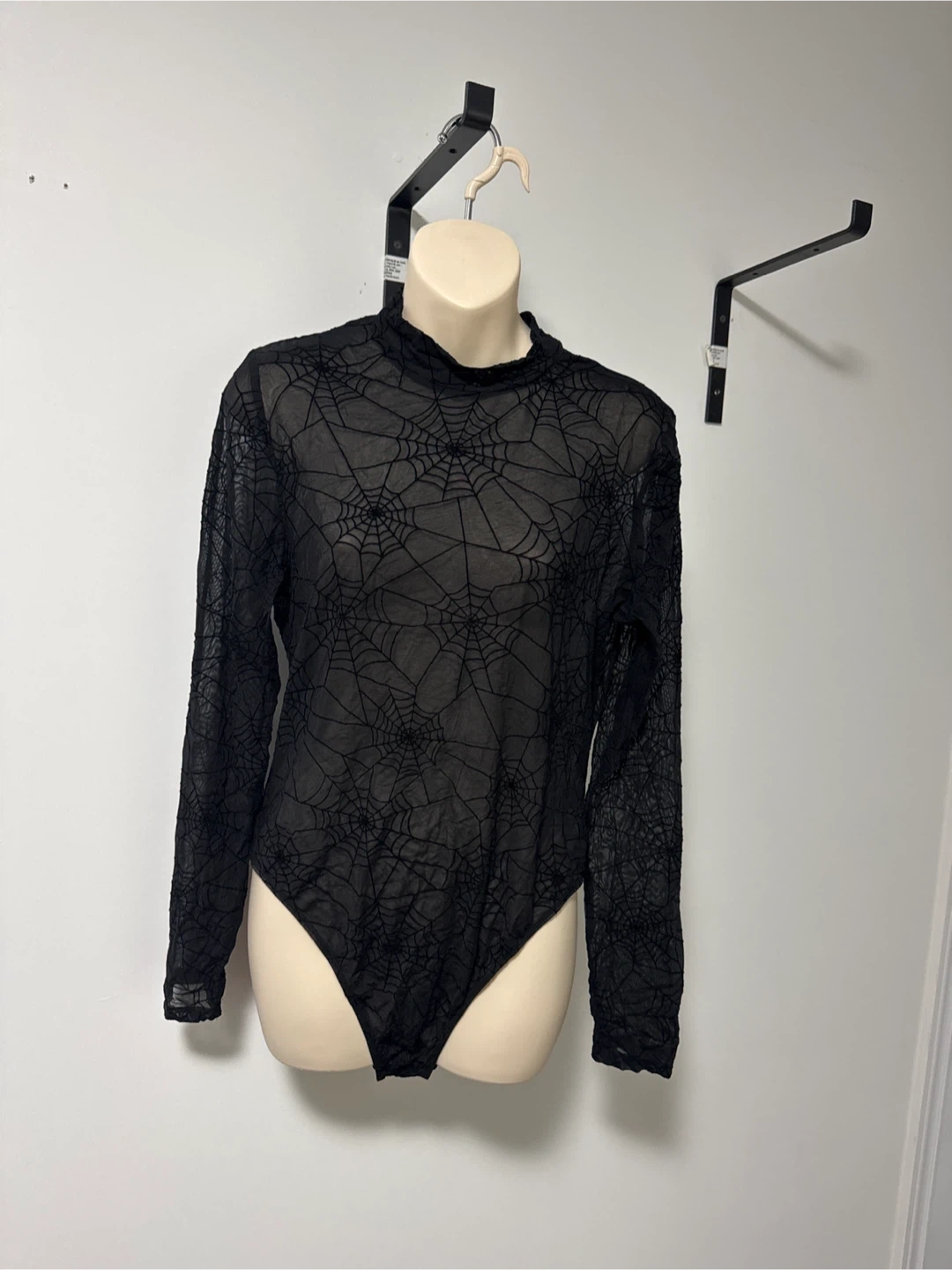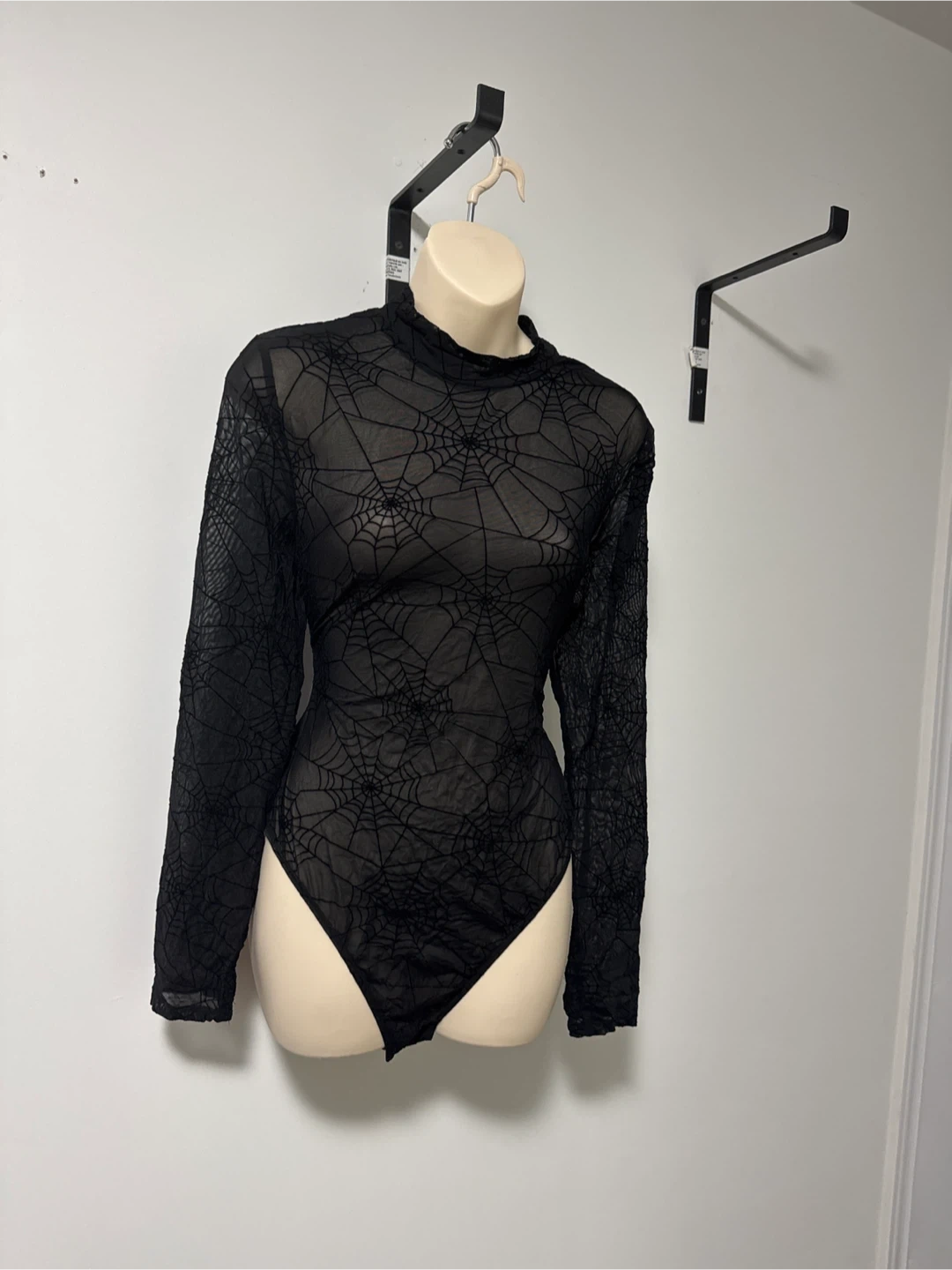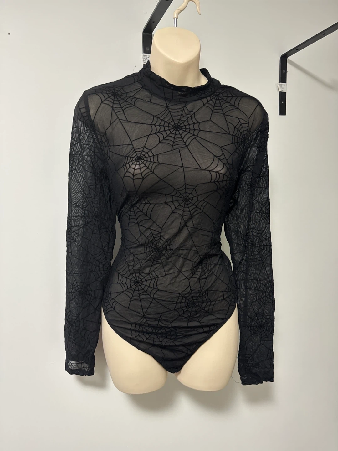 Black Spiderweb Mesh Long Sleeve Bodysuit