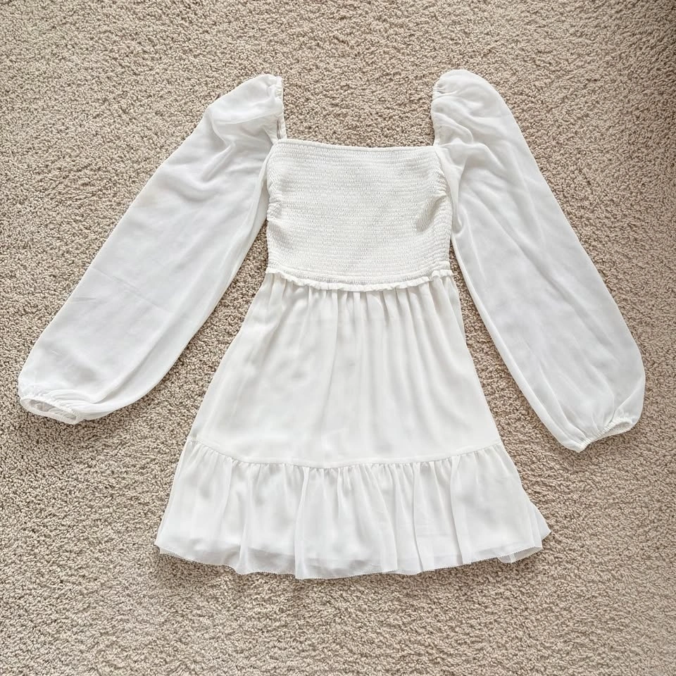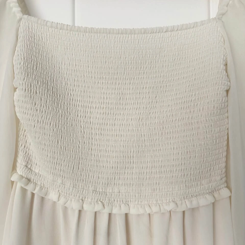 Aritzia Wilfred Tempest XXS Mini Dress Smocked White Chiffon