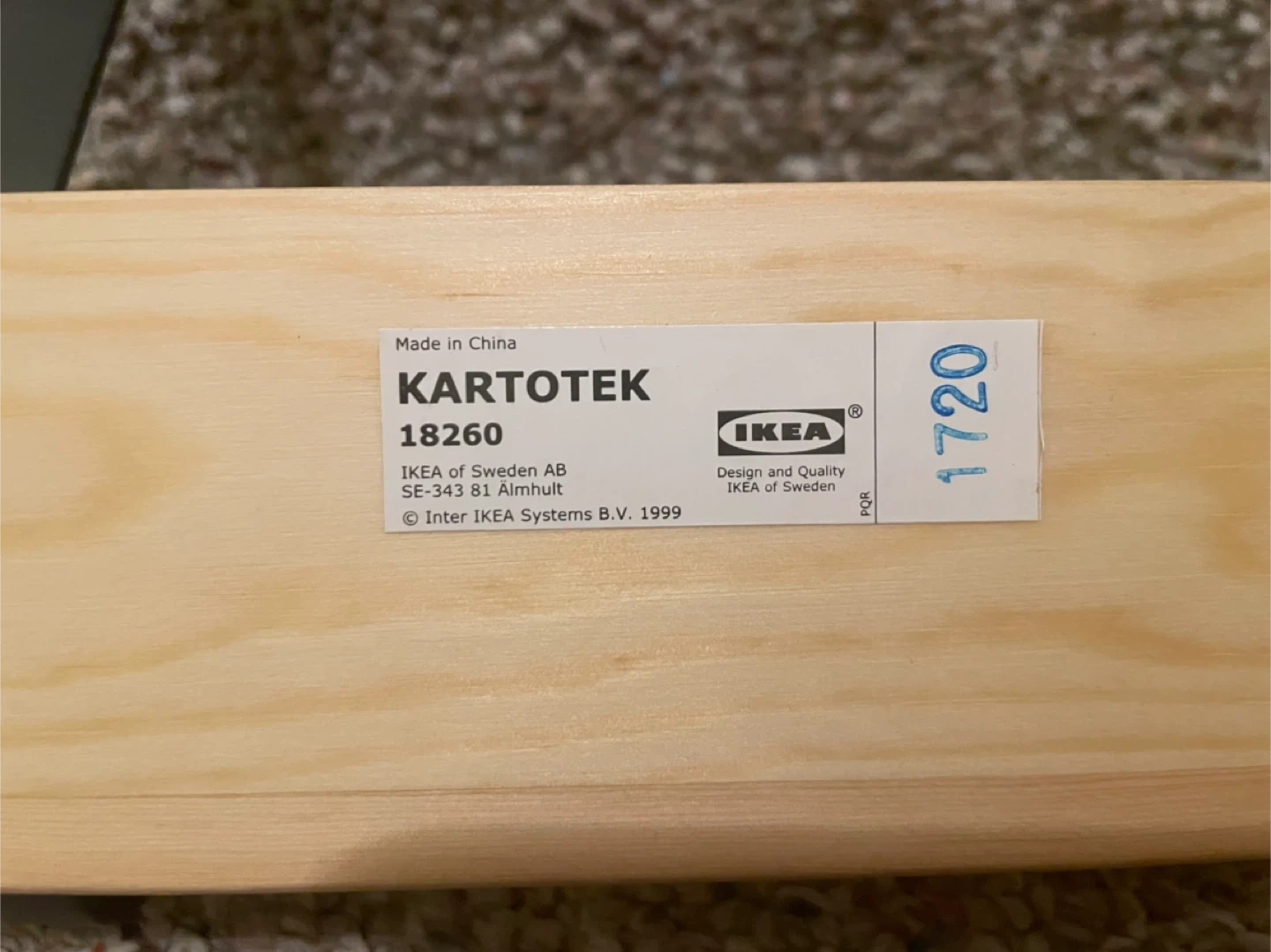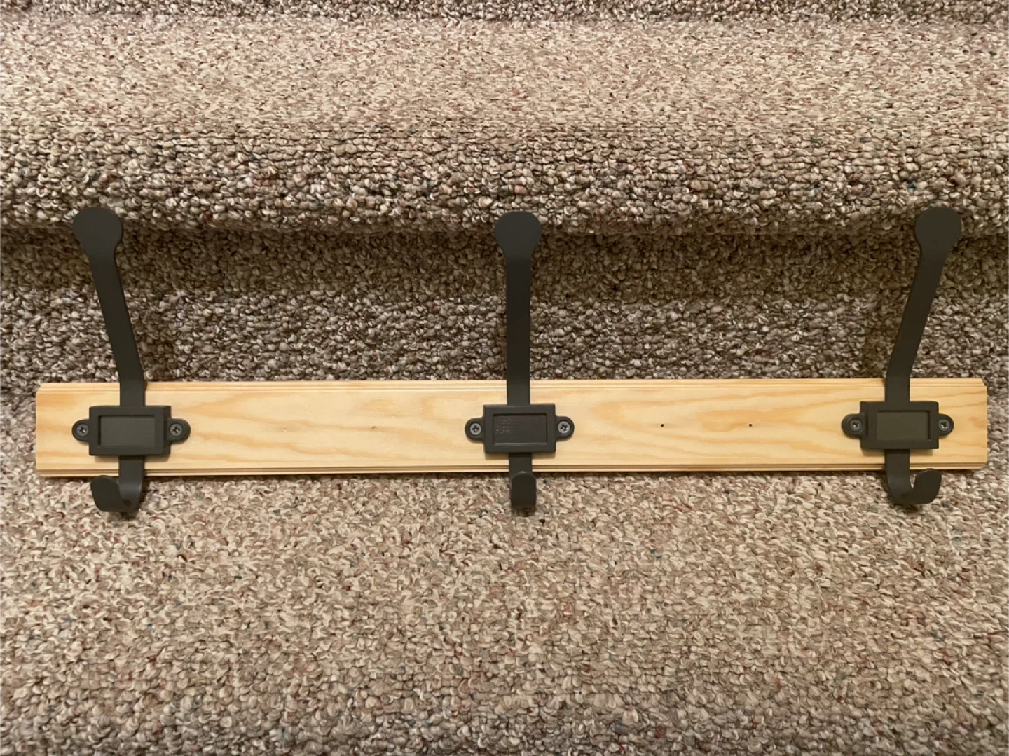 IKEA KARTOTEK wall mounted coat rack with three hooks. Features a natural wood backing and dark metal hooks. Simple and functional design for any entryway.