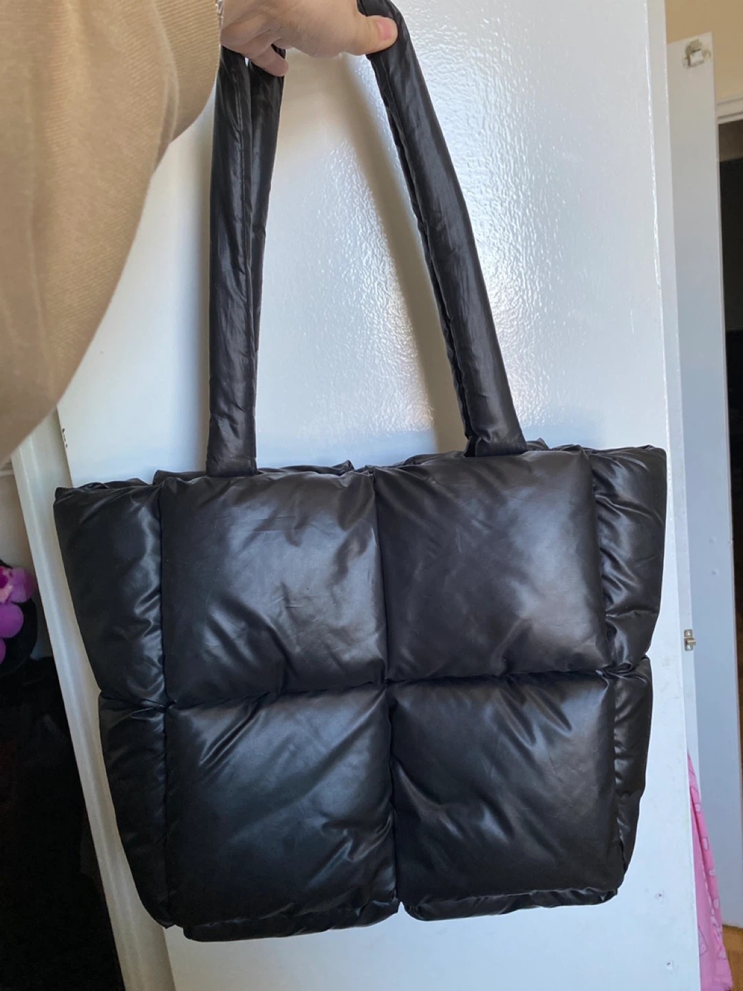 Buy & SellBlack Puffer Tote BagBlack Puffer Tote Bag$15Black puffer tote bag with a top zipper closure. Interior features a zippered pocket. Nylon material.ConditionLike newWHERE TO MEETCedarbrae MallView MapSELLERverifiedReignCedarbrae Mall68171 reviews2 chats·1 favorites·45 viewsSEND CHAT TO SELLERHi Reign! I’m interested in your listing.Hi Reign! I’m interested in your listing.Get the Karrot app to chatSign In to chat