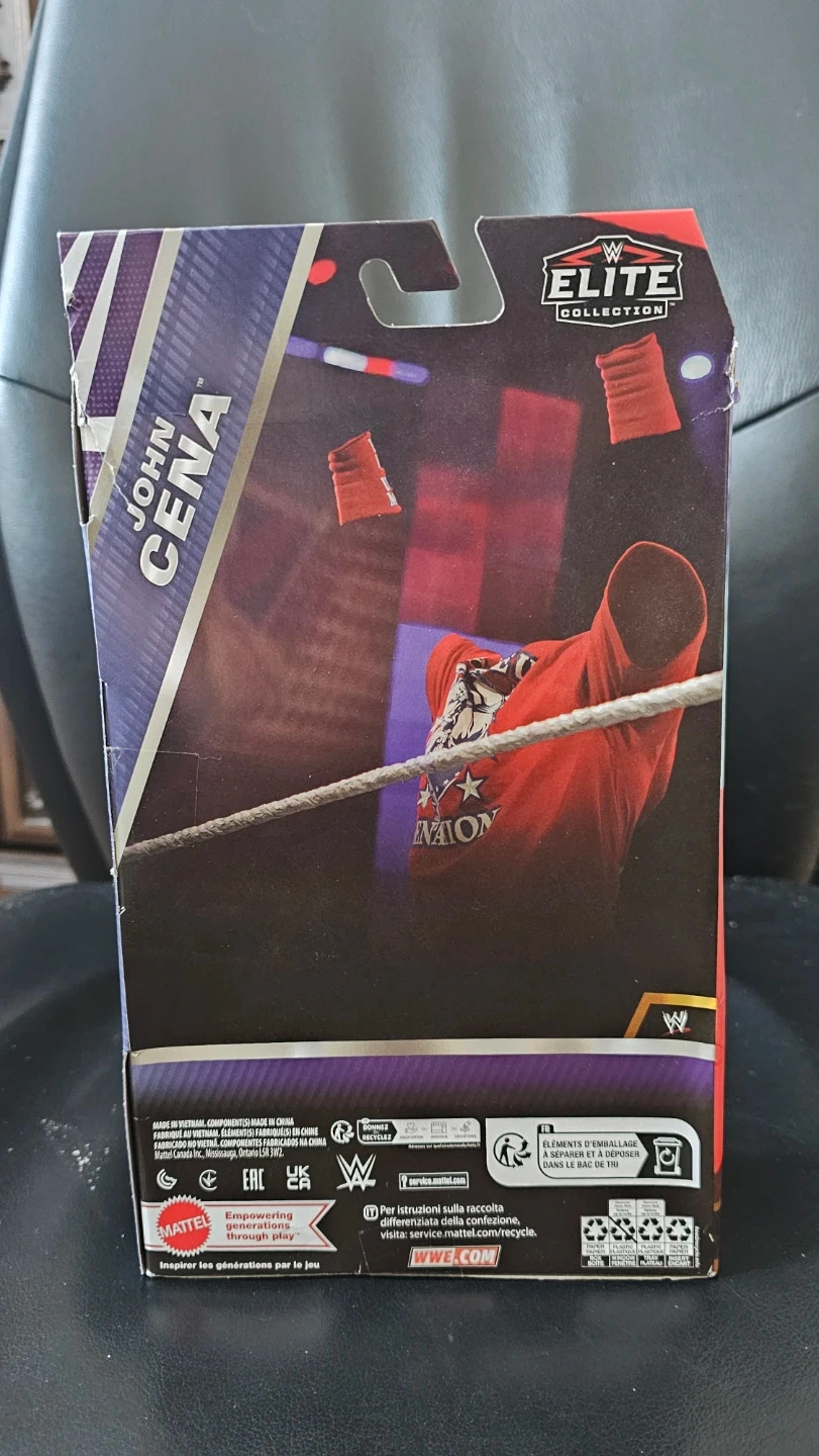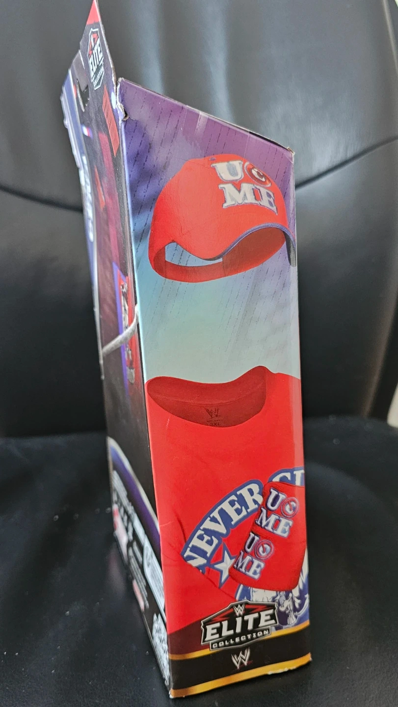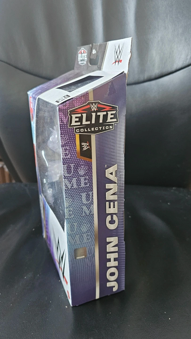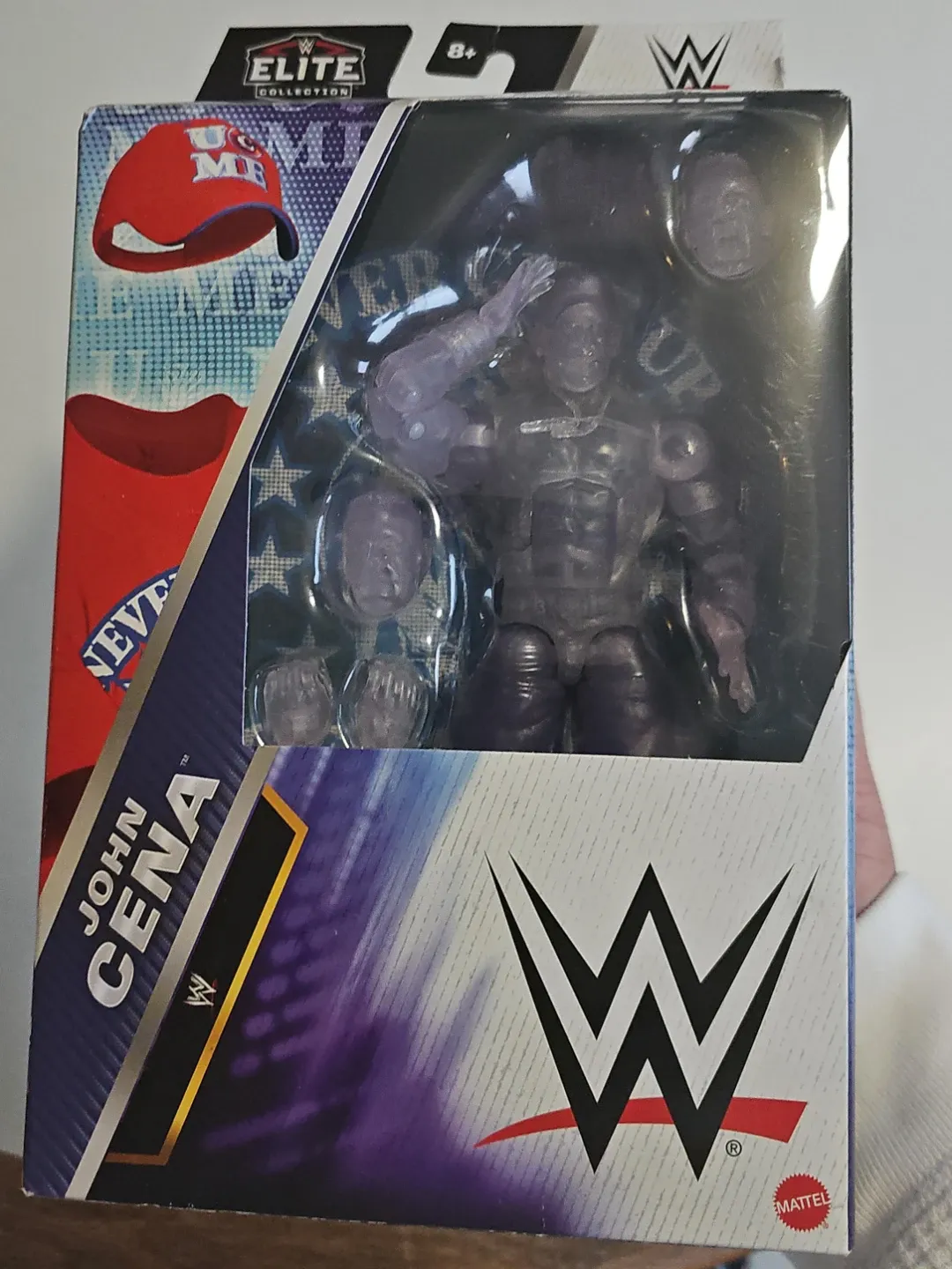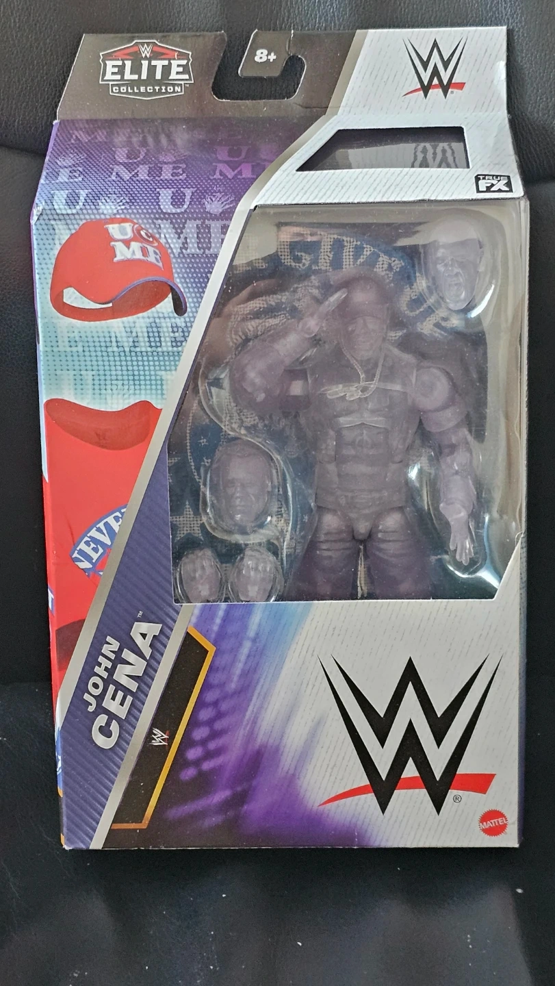 This is a Mattel WWE Elite action figure of John Cena. The U Can't C Me Super Cena edition. It comes with extra heads and hands. Never opened, but there is minor wear on the edges of the carding.