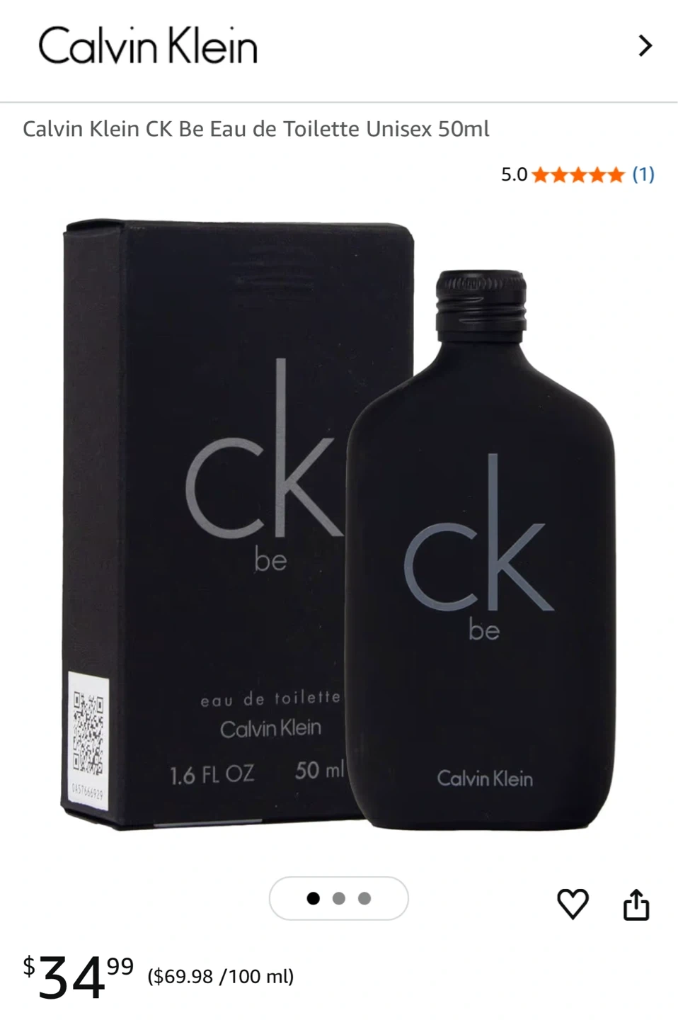 Calvin Klein CK Be Eau de Toilette Unisex. 50ml bottle. Includes original box.