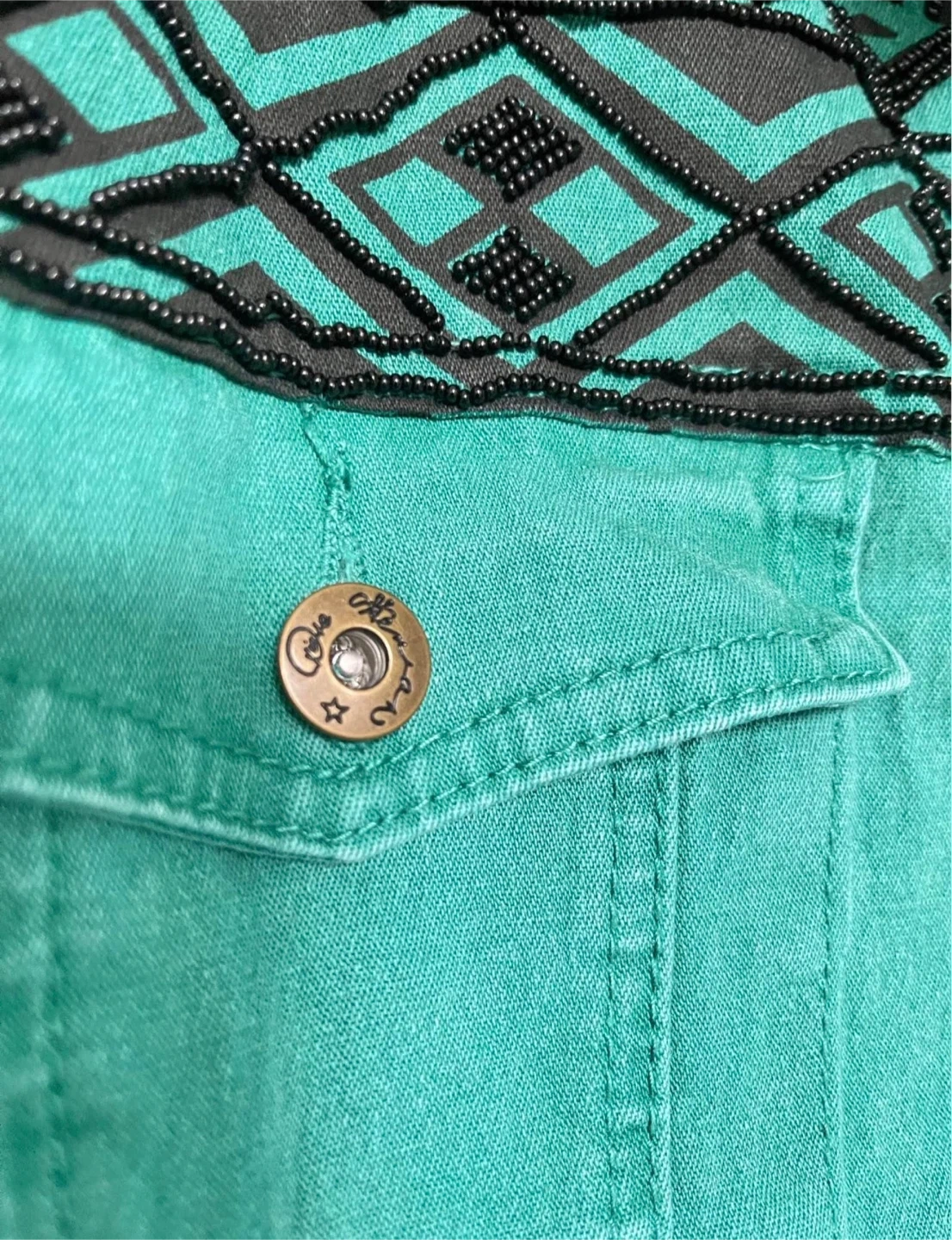 -Vintage denim jacket with beaded details
