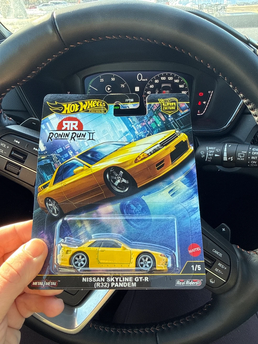 This is a Hot Wheels Premium die-cast model of the Nissan Skyline GT-R (R32) Pandem. It's part of the Ronin Run II series from the Car Culture line. This model features Real Riders wheels.