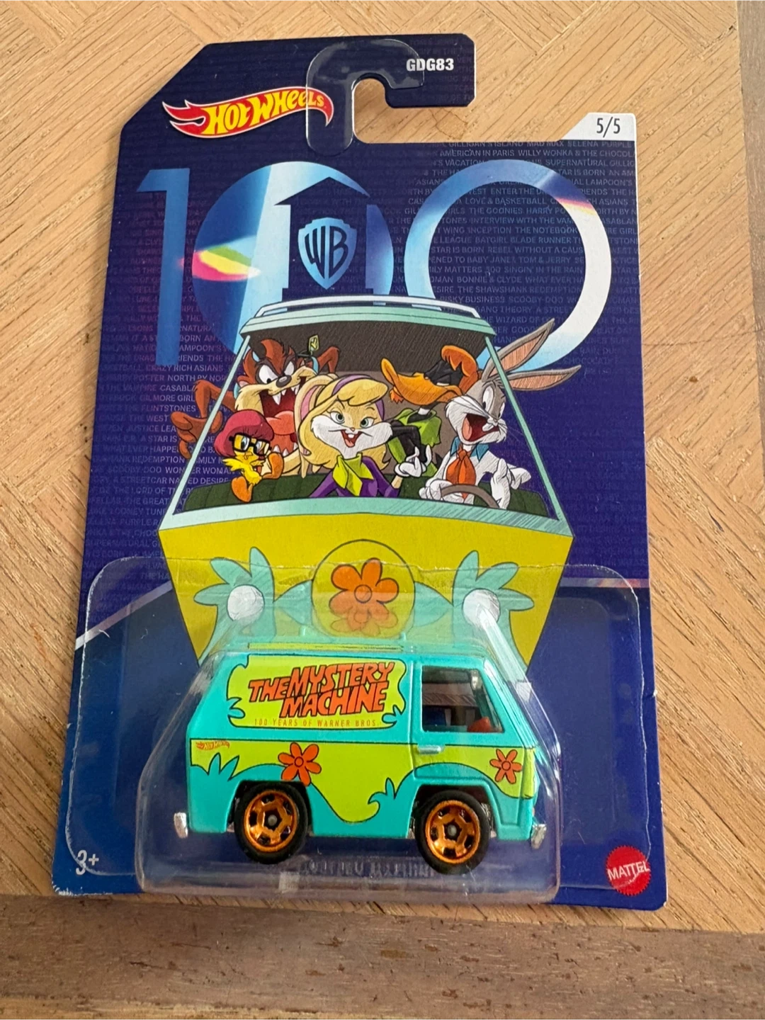 The Mystery Machine from Scooby-Doo. This die-cast vehicle celebrates 100 Years of Warner Bros. It's designed for display or play.