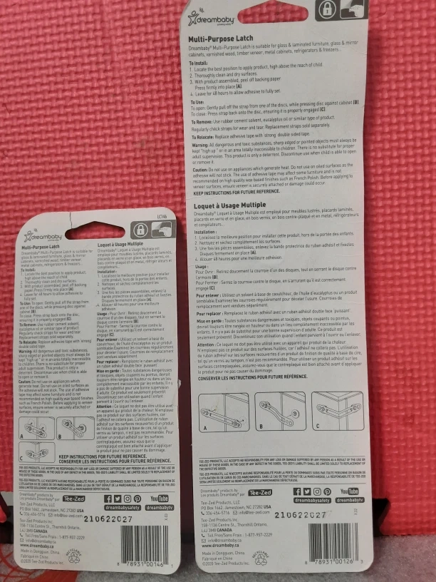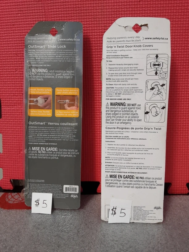 Child safety locks to help secure cabinets, drawers, and doors. Includes one Safety 1st OutSmart Slide Lock and two packs of Dreambaby flexible multi-purpose latches. These are great for keeping little ones safe around the house.