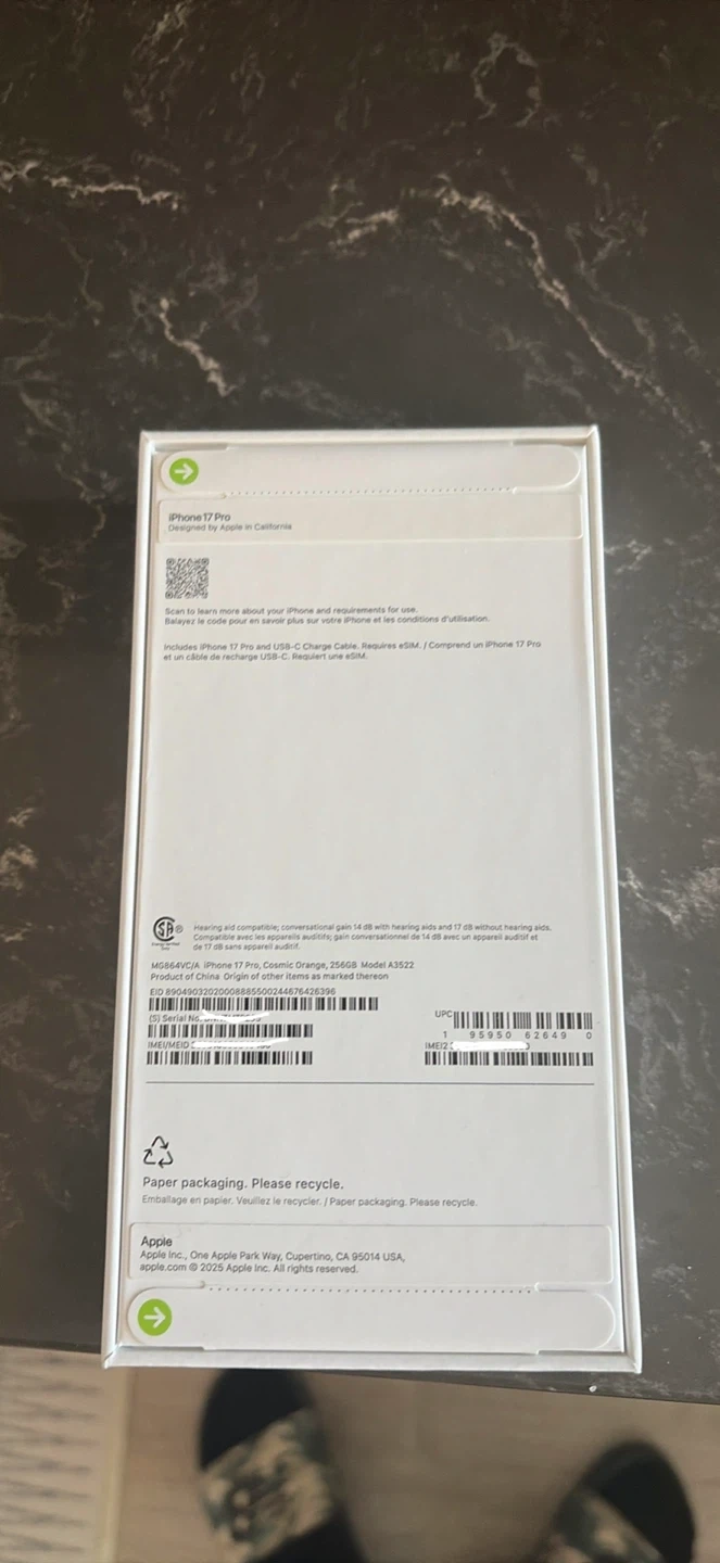 Buy & SelliPhone 17 Pro – 256GB – Cosmic Orange (Sealed & Unlocked)iPhone 17 Pro – 256GB – Cosmic Orange (Sealed & Unlocked)$1,550Apple iPhone 17Pro in Cosmic Orange. It's the 256GB model. Includes USB-C Charge Cable.WHERE TO MEETCheck LocationView MapSELLERJulianDurham College100 reviews2 chats·0 favorites·34 viewsSEND CHAT TO SELLERHi Julian! I’m interested in your listing.Hi Julian! I’m interested in your listing.Get the Karrot app to chatSign In to chat