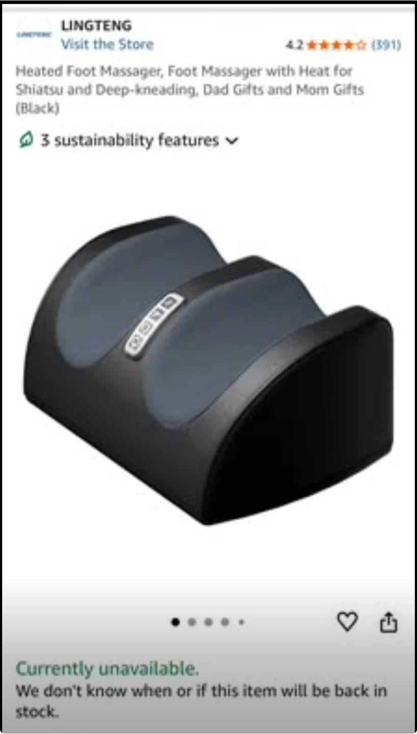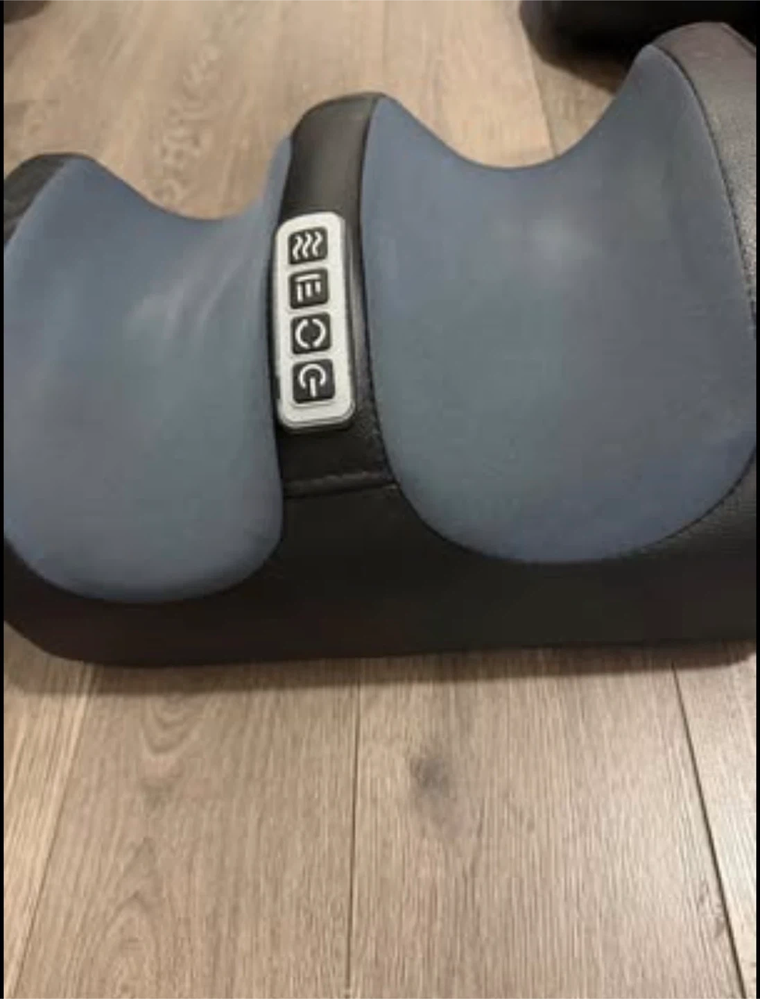 Black heated foot massager with 4 massage settings and heat. Has a control panel with buttons for different functions. The massager has a soft, padded surface and is designed for comfort.I have hardly used it for 3-4 times.