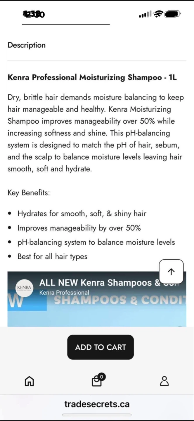 Sealed 1L Kenra Shampoo