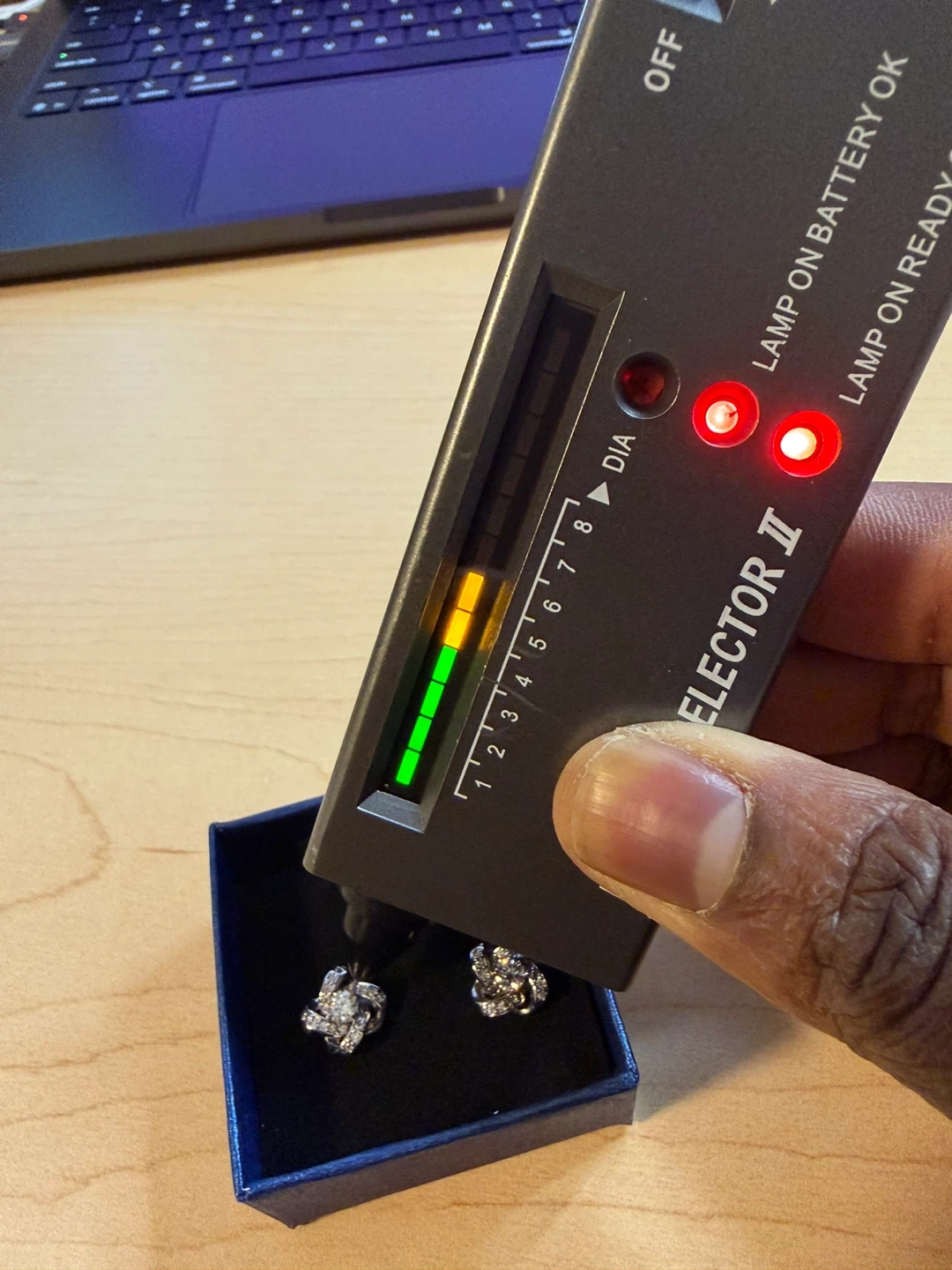 The diamond tester indicates they are genuine