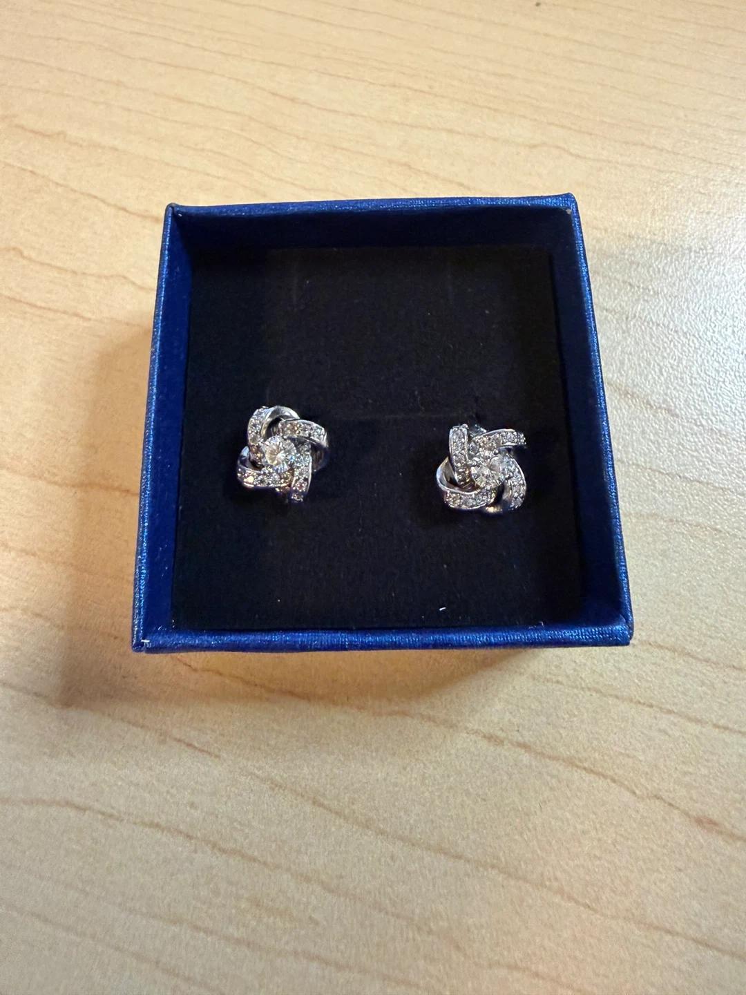 They feature a unique knot design with small stones.