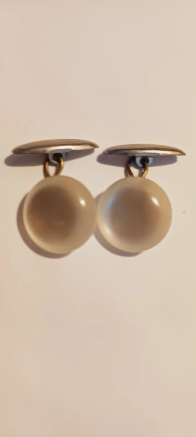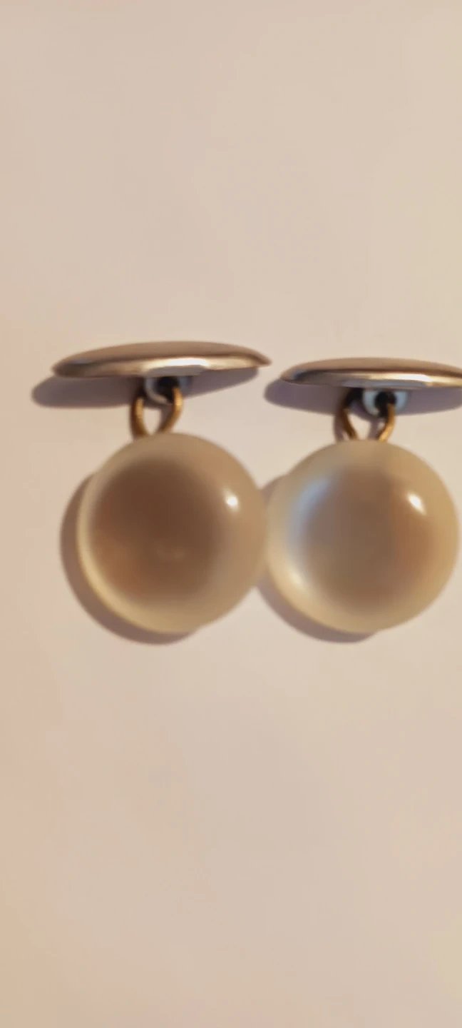 A pair of rare vintage white Moon Glow ๐ Lucite cufflinks with round, translucent balls on a metal finding. These add a classic touch to any dress shirt. Perfect for formal occasions or everyday wear. Excellent condition. 1" ร1". ALL MY PRICES ARE NEGOTIABLE !!