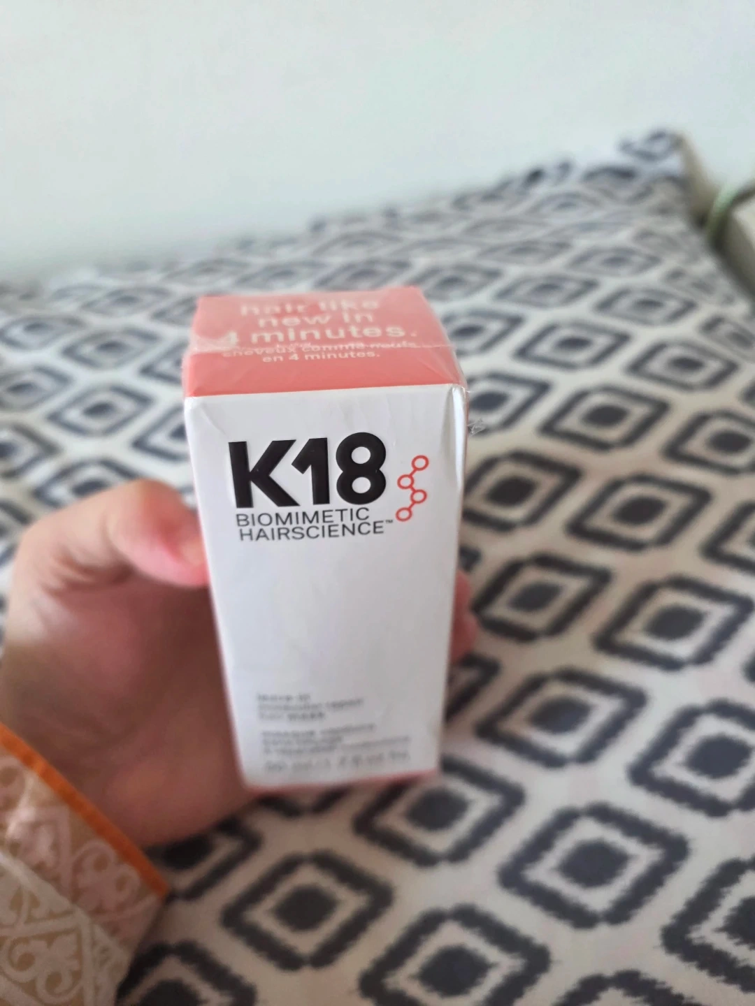 K18 Biomimetic Hairscience Leave-In Mask for hair repair. It's 50 ml. Effective on hair in 4 minutes!