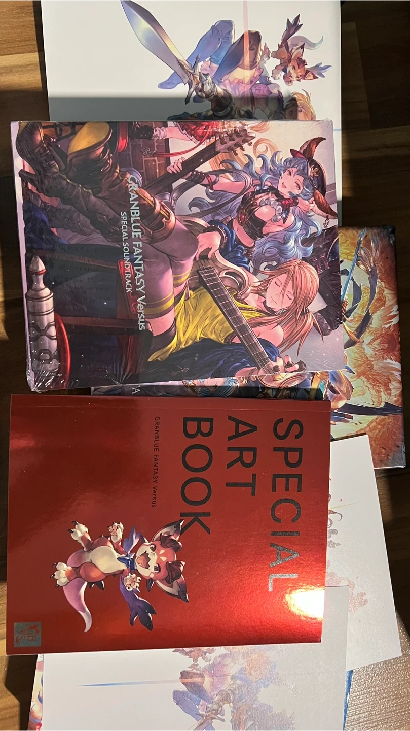 This listing includes the Granblue Fantasy Versus Special Art Book and Special Soundtrack. Both items feature vibrant artwork from the game. Perfect for fans of the Granblue Fantasy series!