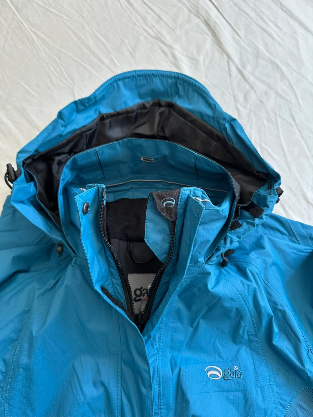 Brand new Craghoppers Gaia Aquadry waterproof jacket in blue colour with hood. It's a size UK 10 or EUR 36. Features multiple pockets inside and out, and adjustable cuffs. This jacket's designed for wet weather conditions!