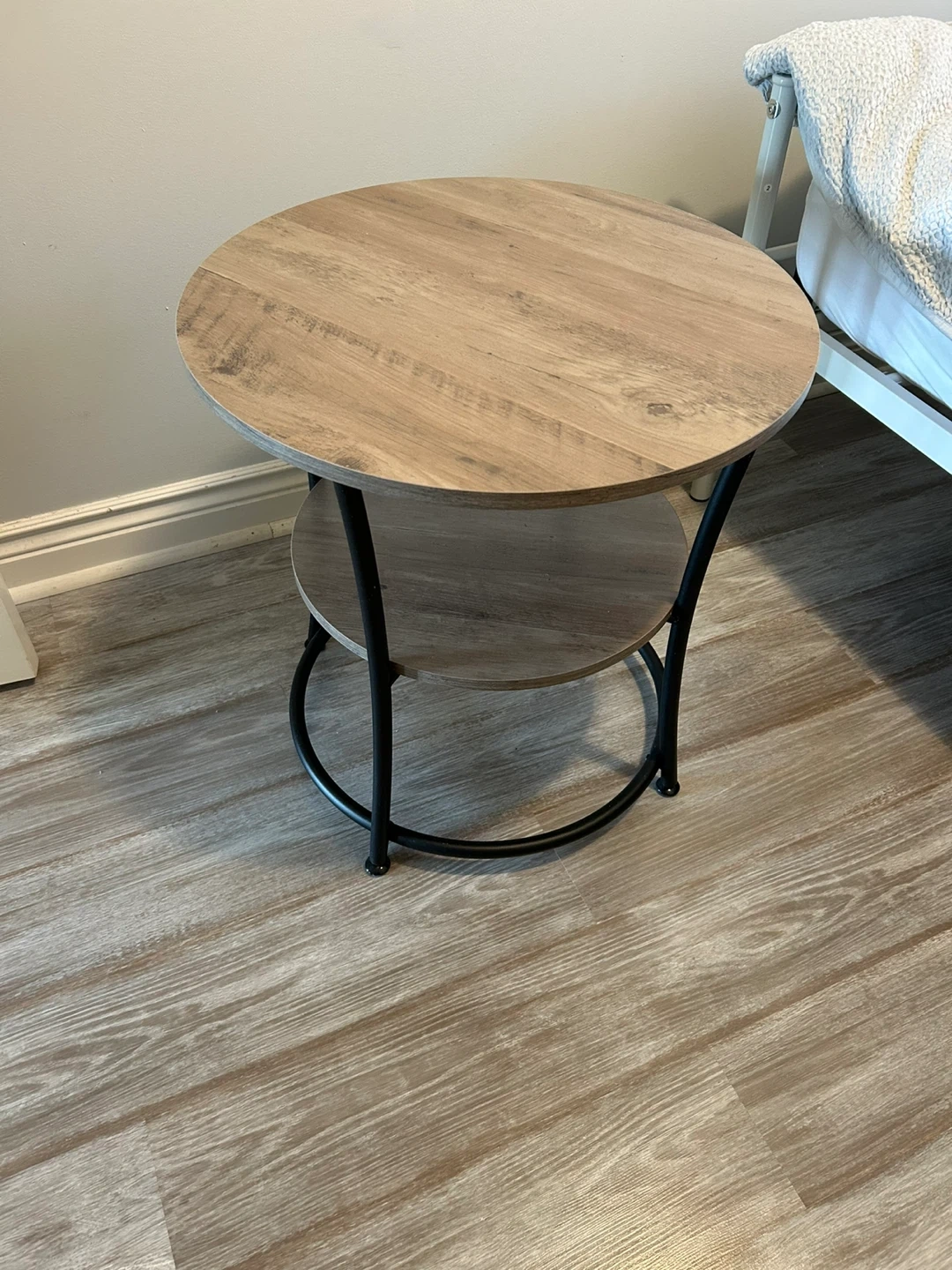 2 Tier round nightstand or end table with steel frame. Perfect for small places . Great for living room or bedroom. (55cmDx55cmWx55cmH) Excellent Condition