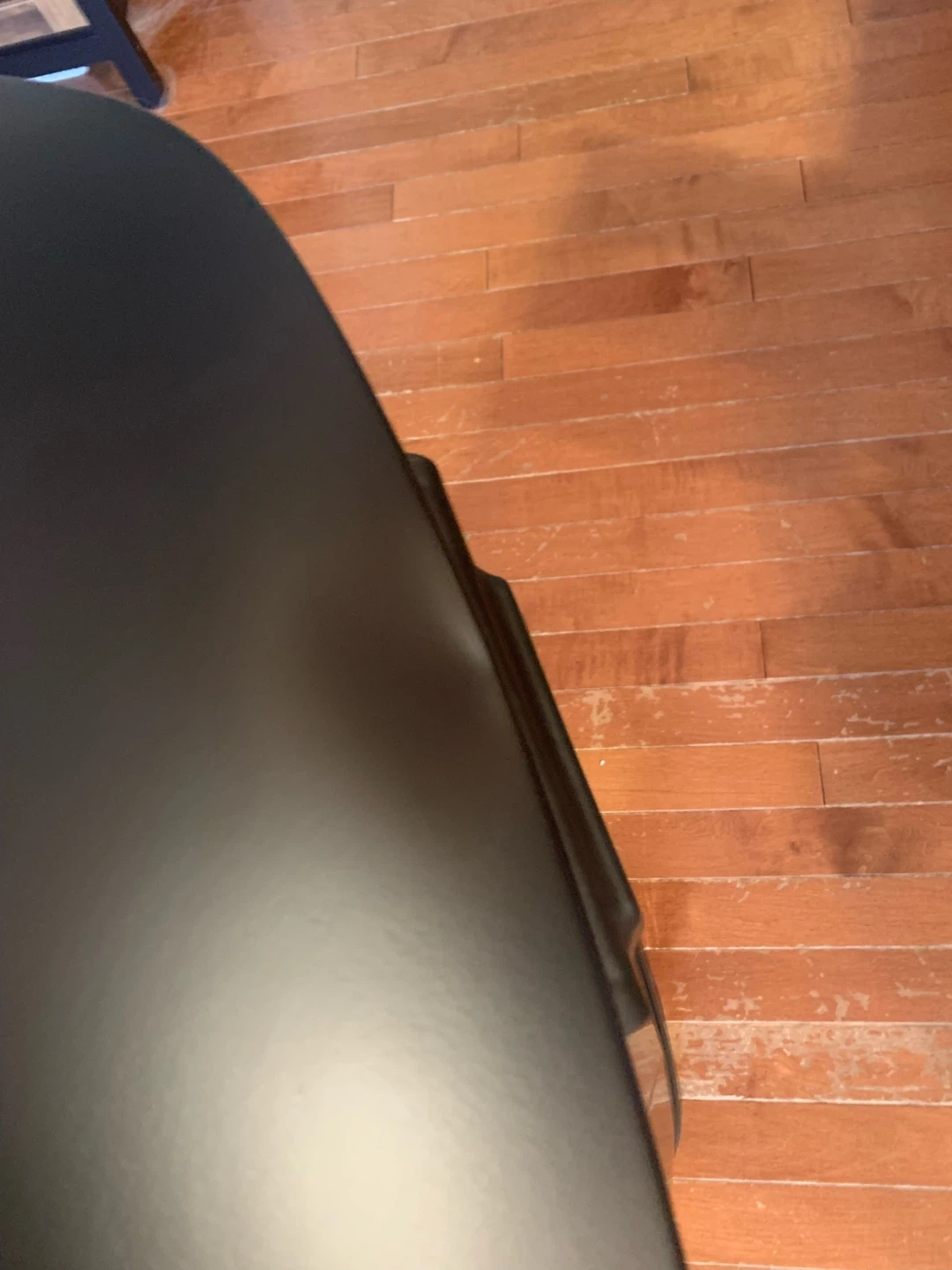 This is a black slim step trash can. It has a soft-close lid and a handle for easy transport. The slim design fits well in tight spaces. It's brand new from Wayfair - retails $139.99 - 13 gallon or 50 litres . It has a small dent as shown on pictures & price reflects.