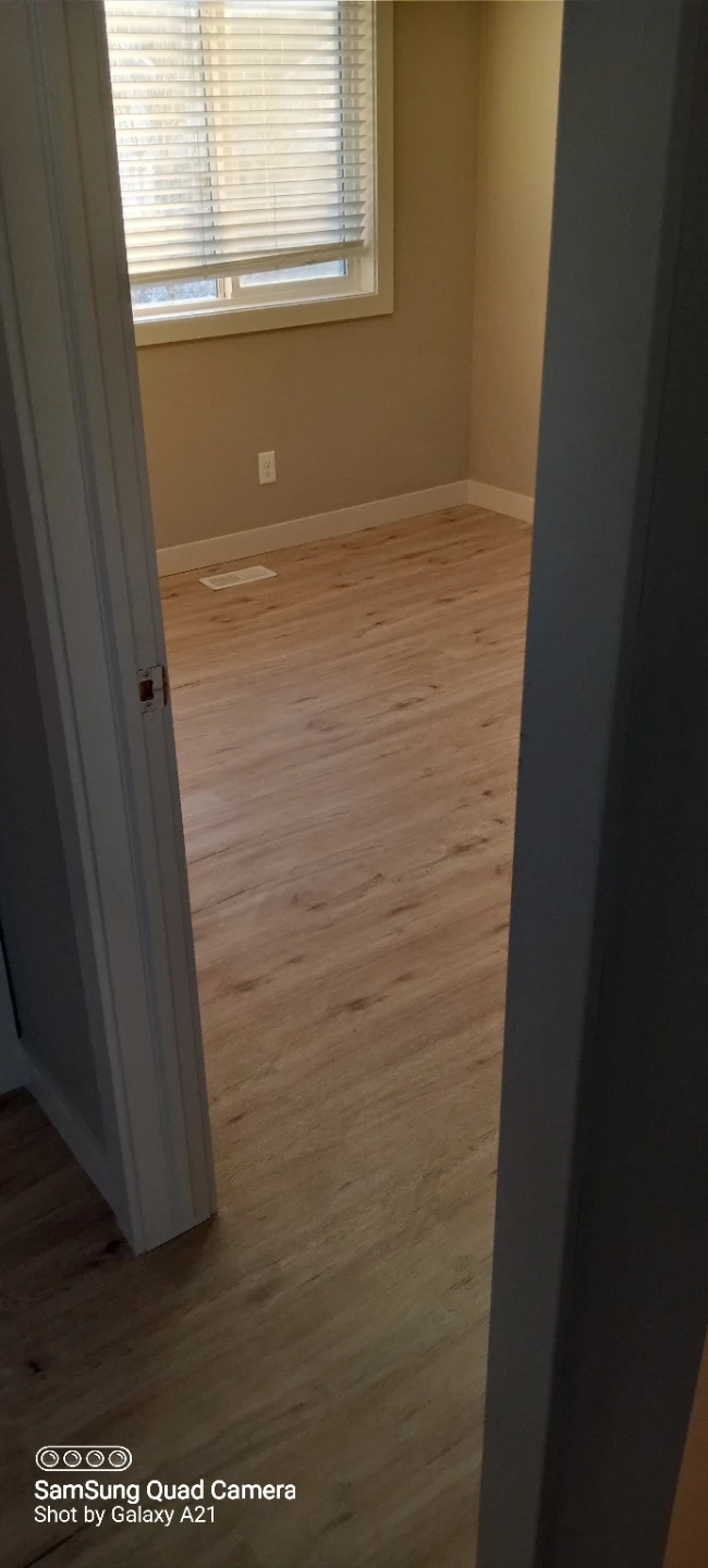 Beautiful light wood laminate flooring, great for any room. Easy to install and maintain. This flooring provides a modern and clean look to your home.