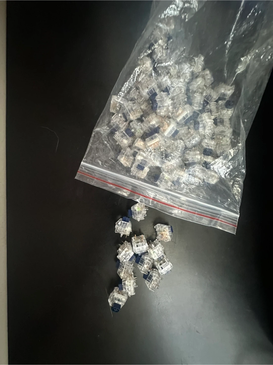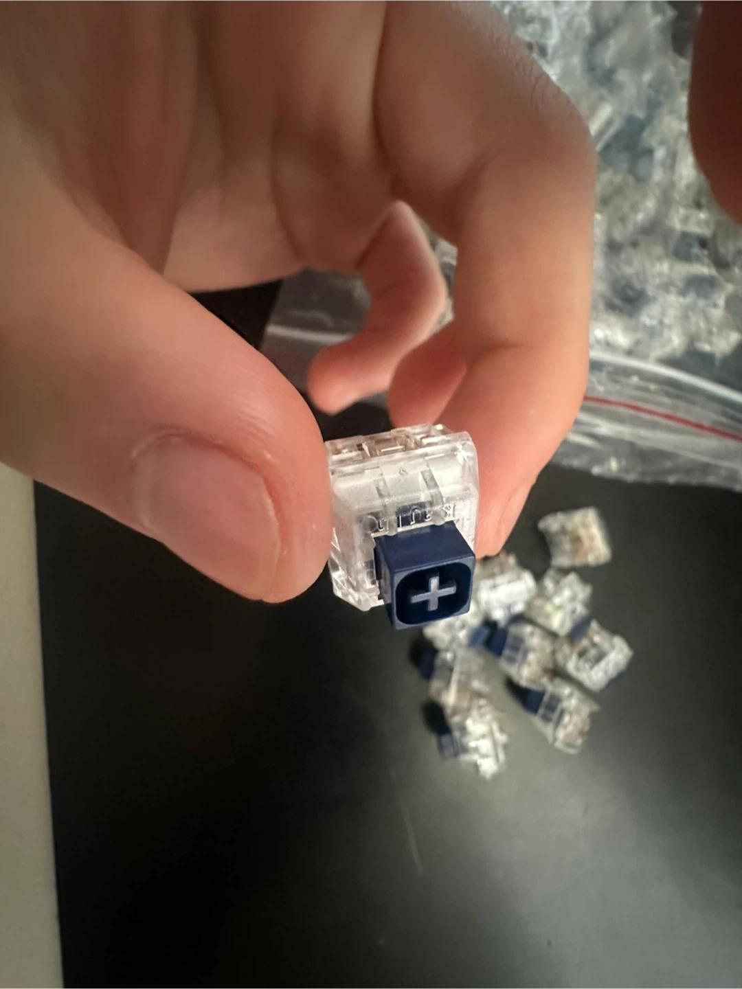 Comes with lubed linear boba u4t switches, AND navy kaih tactile switches.