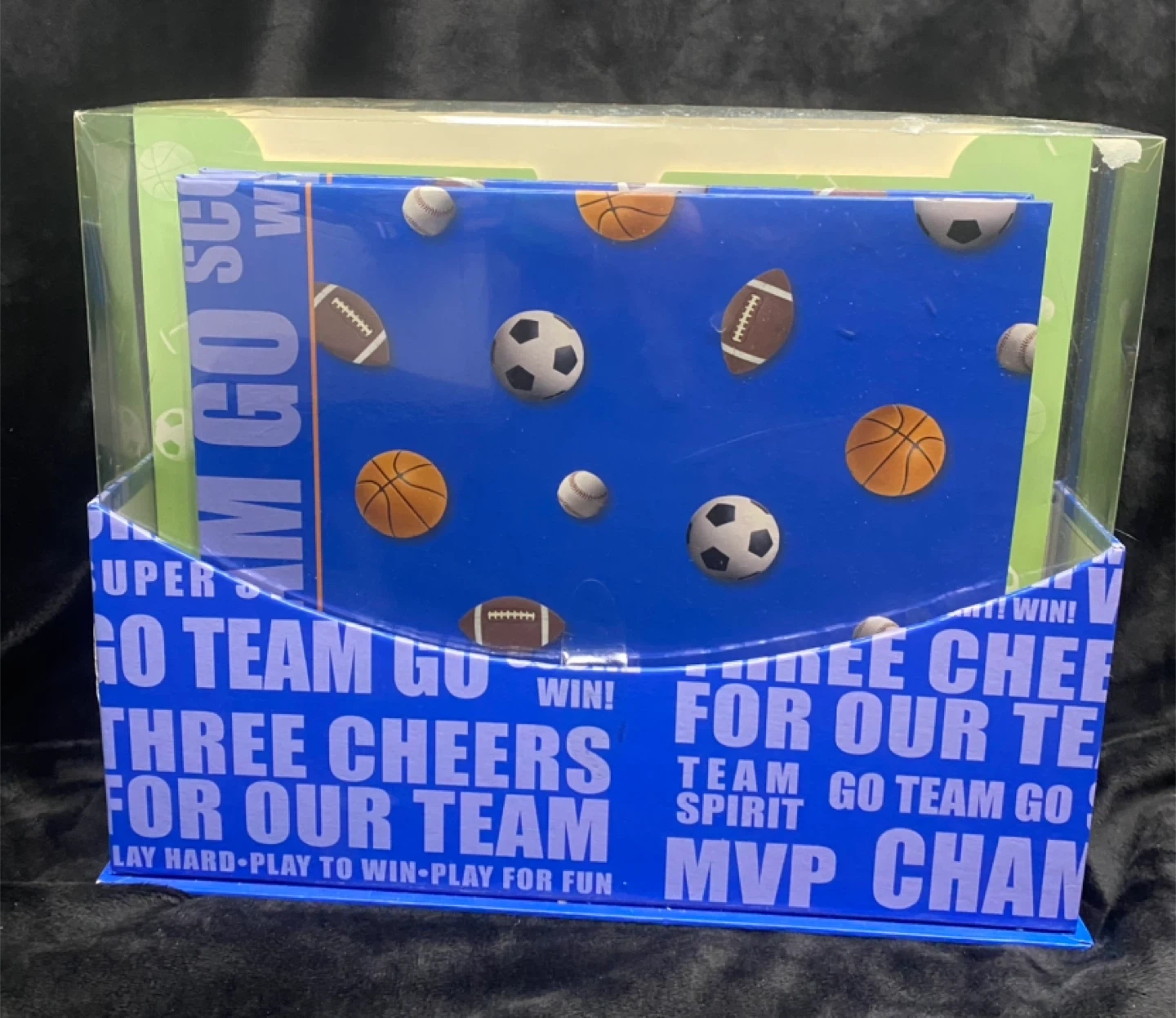 This Markings scrapbook kit by C.R. Gibson includes various papercrafting supplies. The kit features a sports-themed design with football, basketball, and soccer motifs. Perfect for organizing and preserving sports memories!