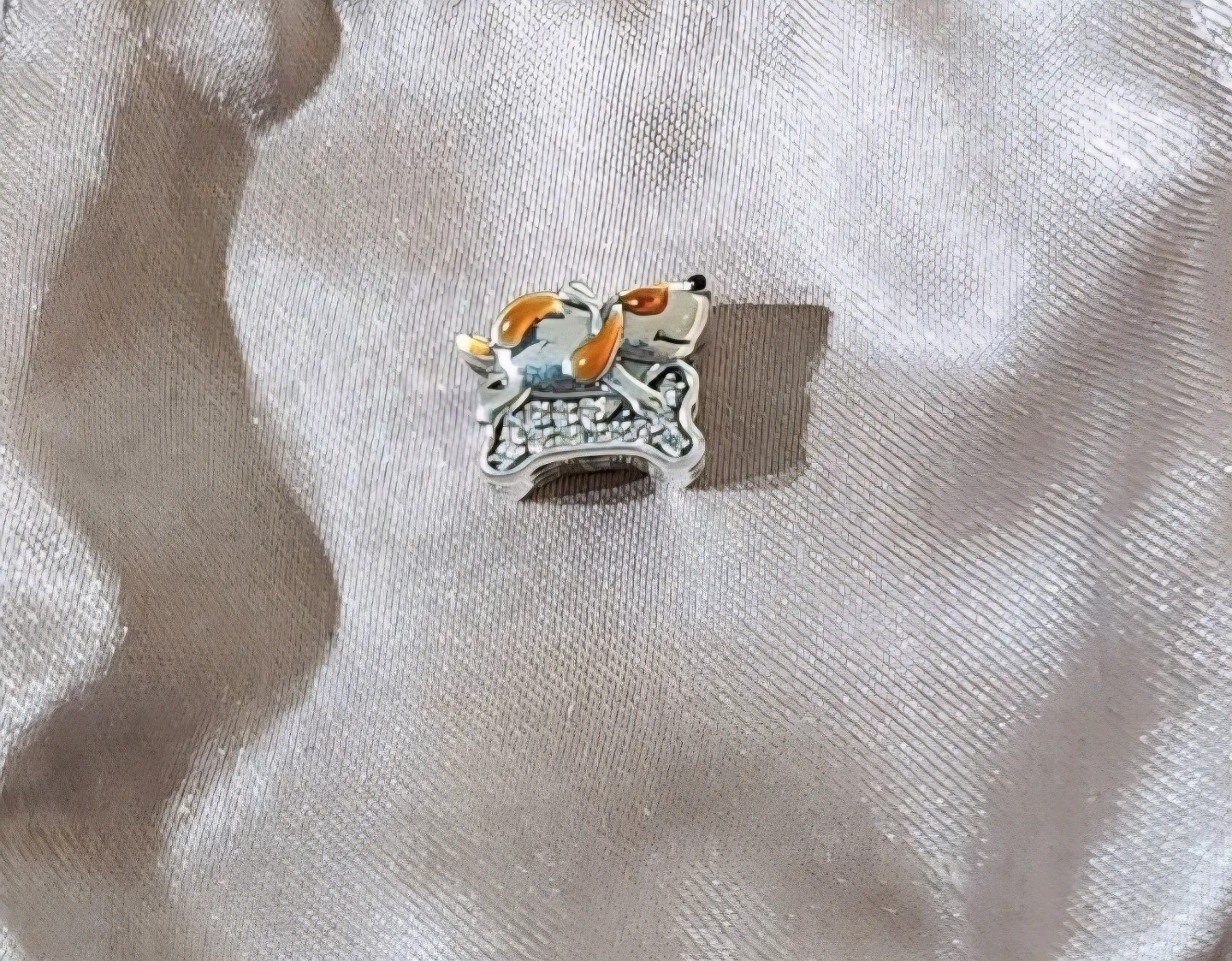 This charming dangle features a cute dog sitting on a bone, adorned with sparkling crystals. It's a lovely accent for bracelets or necklaces, adding a touch of playful elegance.