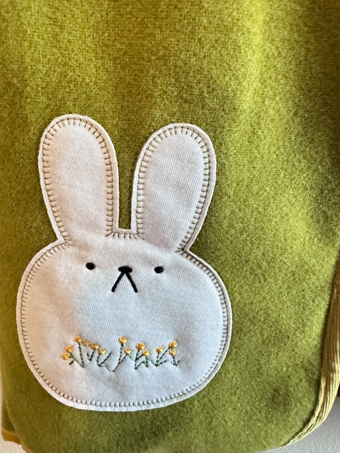 This adorable green quilted set features cute bunny appliques on the front. It's lined for extra warmth! The front has a zipper closure and decorative yellow trim. Perfect for layering on cooler days.