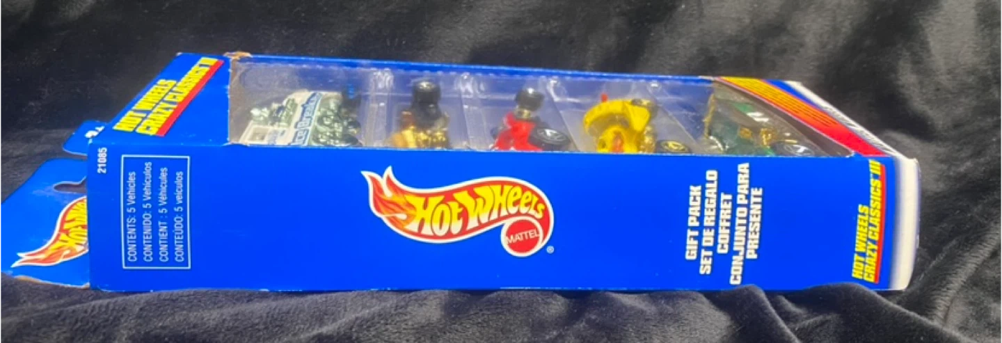 Relive the nostalgia with this vintage, new-in-box Hot Wheels Crazy Classics III set featuring five unique and collectible die-cast cars. This set is a treasure for Hot Wheels enthusiasts and collectors alike!