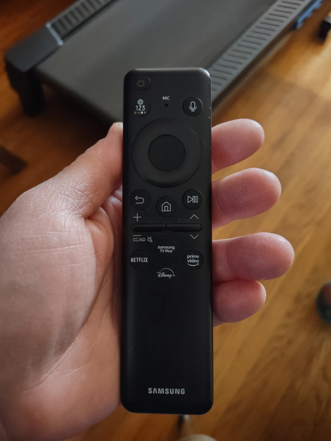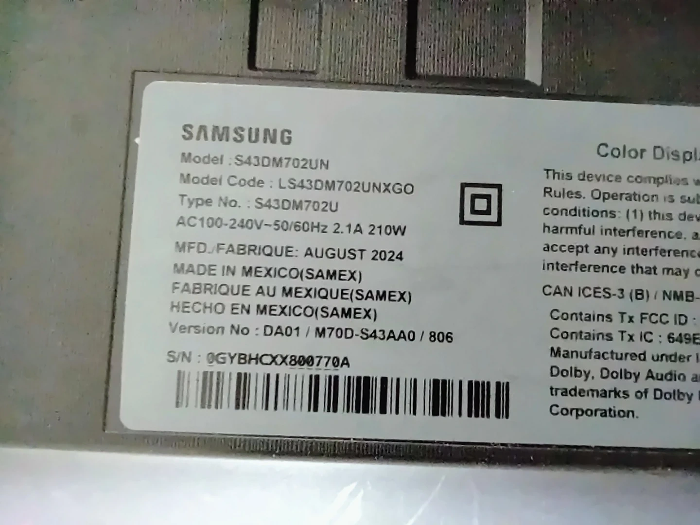Samsung 43-inch Smart TV/Monitor , model S43DM702UN. It's black with a stand. Includes a remote and power cord.