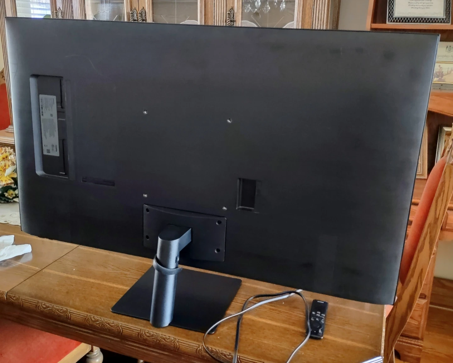 Samsung 43-inch Smart TV/Monitor , model S43DM702UN. It's black with a stand. Includes a remote and power cord.