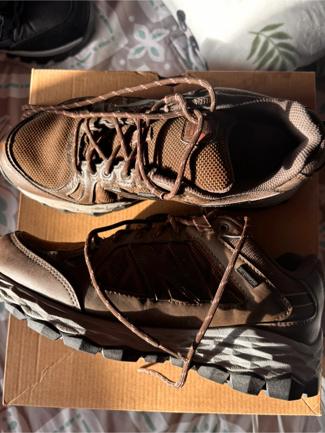 These New Balance hiking shoes are a versatile brown colour. They're designed for comfort and durability on various terrains. Perfect for trails or everyday wear!