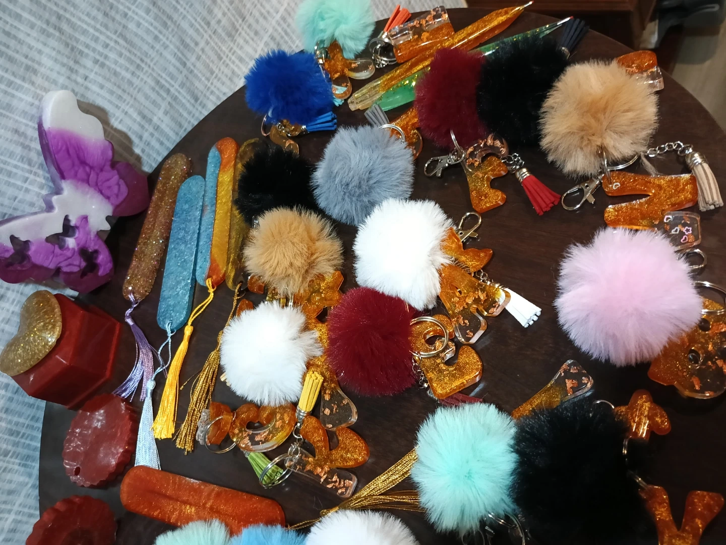 Assorted Pom Pom and Glitter Keychain Charms