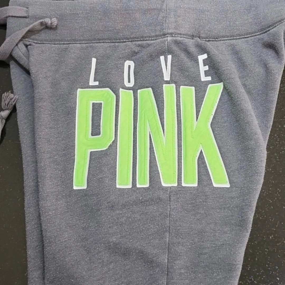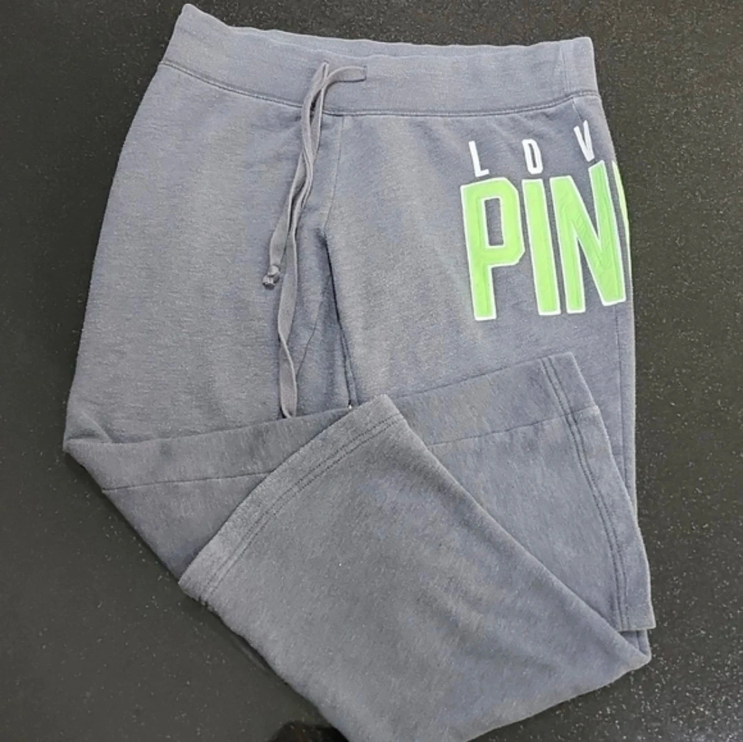 Victoria's Secret PINK joggers/sweats in grey. Features "LOVE PINK" graphic. Size is small. Made of 60% cotton. Previously loved. In great condition. Inseam approximately 26 1/2 inches. These fit snugly.