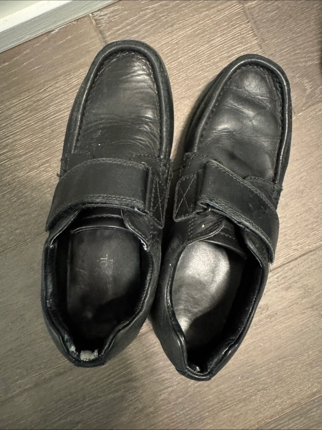 Black Leather Loafer Shoes Velcro Boys clothing