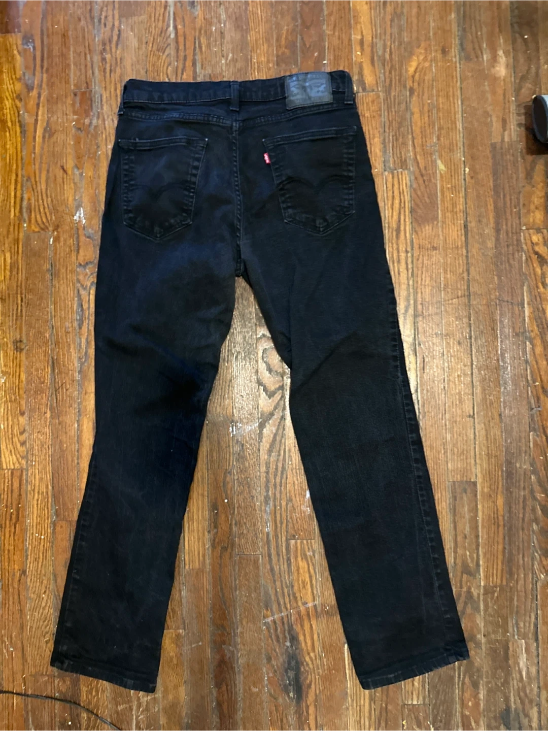 Classic black Levi's denim jeans. These are a stylish and durable choice for everyday wear. They feature a comfortable fit and are made from high-quality denim.