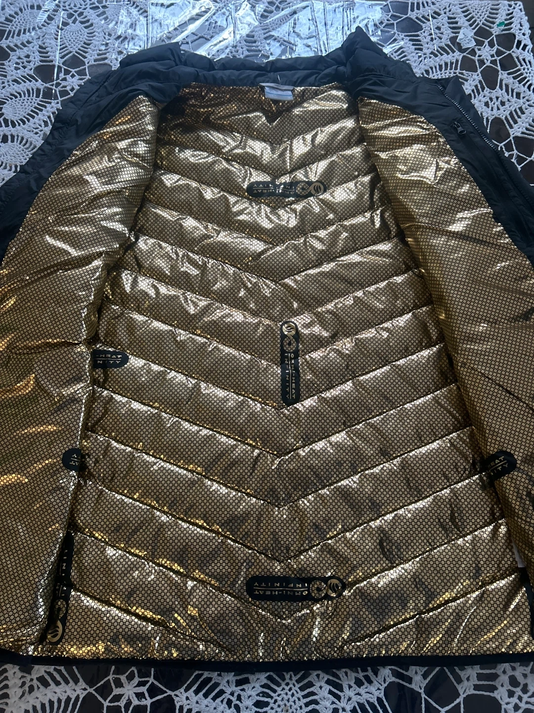 Columbia puffer jacket with Omni-Heat technology. Size XL. This jacket's lining reflects body heat to keep you warm.