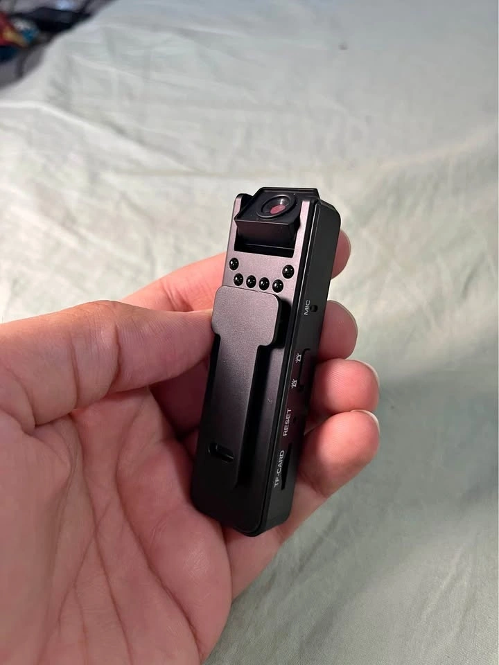 New Action Camera - Full HD. Rotatable camera with an in-built microphone. Can be clipped on to your shirt to record 'Point of View' videos & photos. Waterproof with video stabilization. Great for sports, skiing, vlogging, or as a gift.