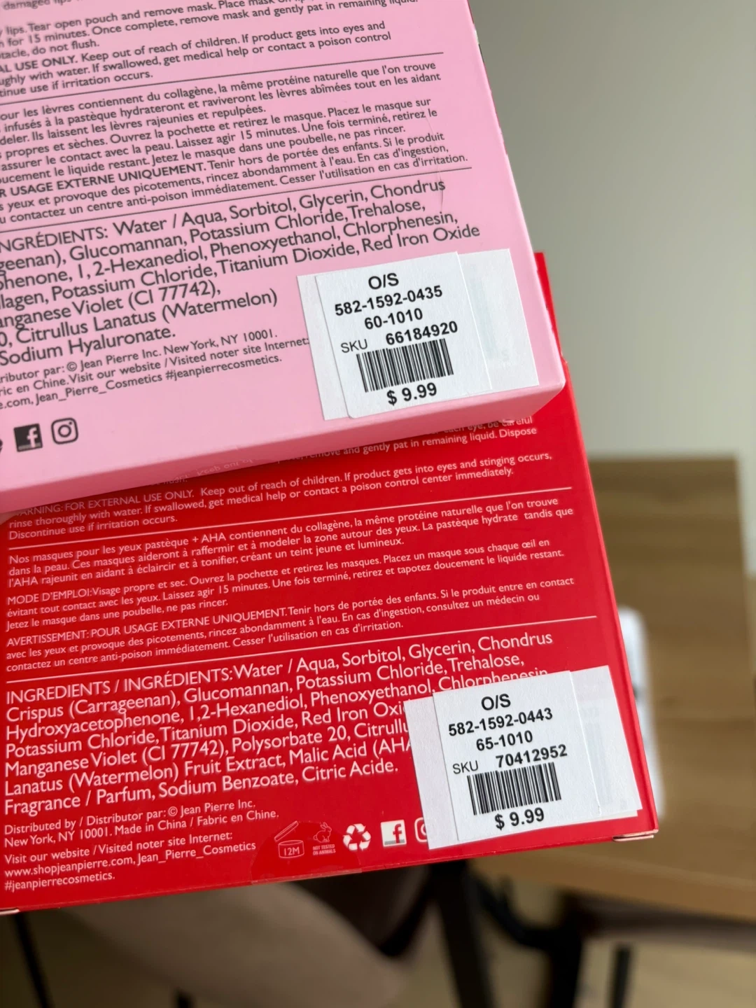 1. Korean face masks (good until 2028) - 12*$2=$24