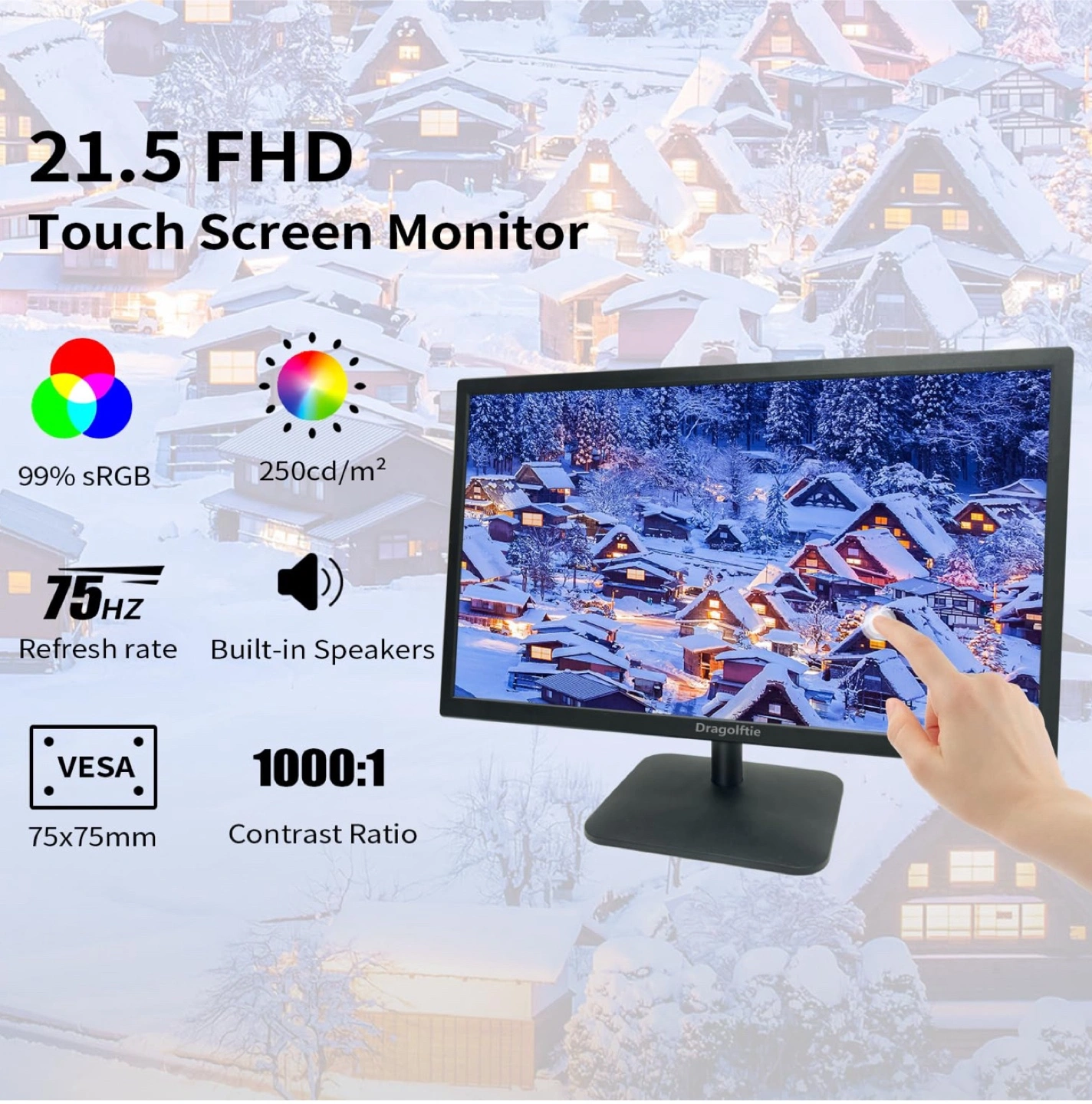 Upgrade your setup with this brand new Dragolftie 21.5-inch Touchscreen Monitor, perfect for work, gaming, design, or everyday use! Experience smooth, responsive touch performance and crystal-clear Full HD visuals all in one sleek monitor.