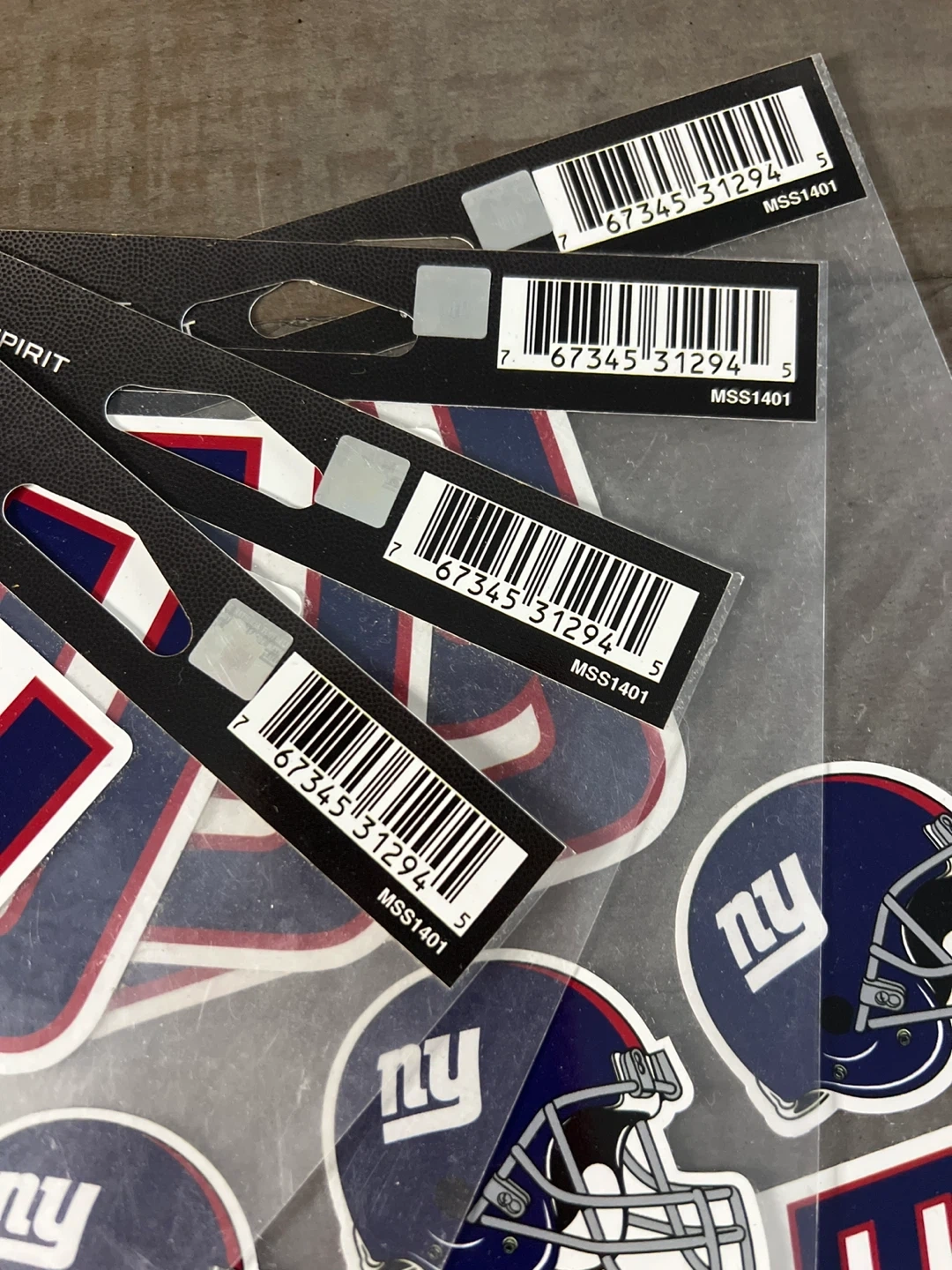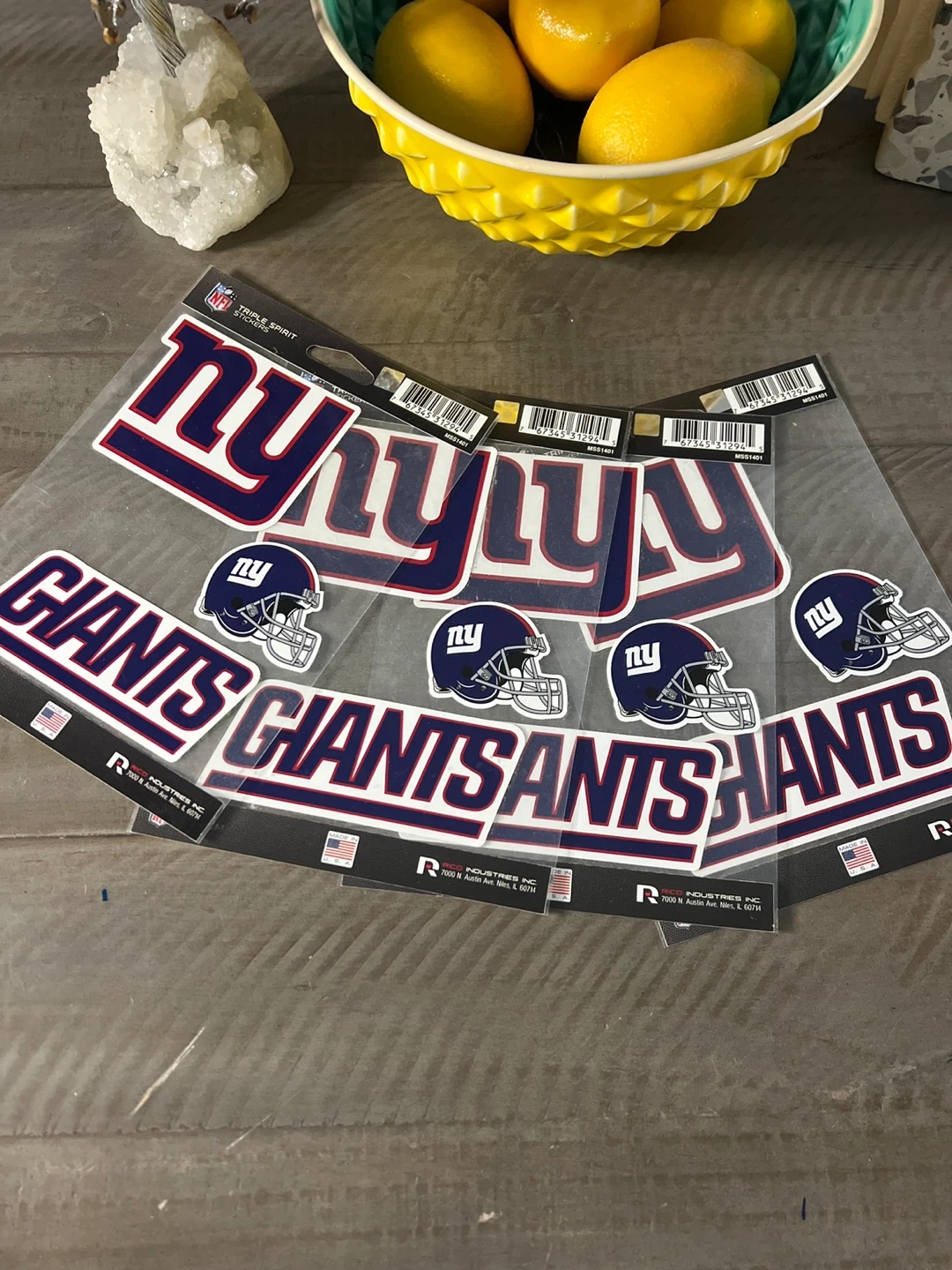 Show your team spirit with this set of four NFL New York Giants stickers. Each pack includes "NY" logos and helmet designs. Perfect for decorating laptops, water bottles, or your car!