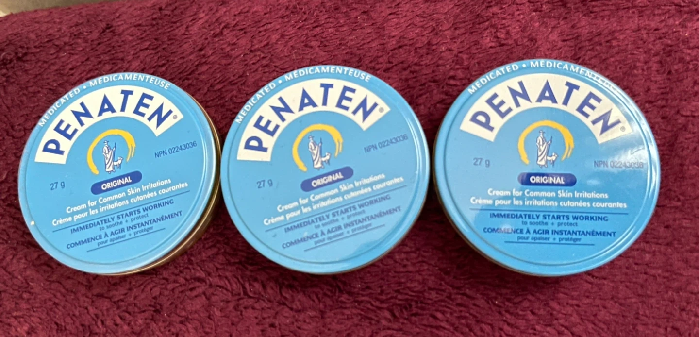 This is a 3-pack of Penaten Original cream for common skin irritations. Each tin contains 27g of product. It's medicated to soothe and protect the skin.