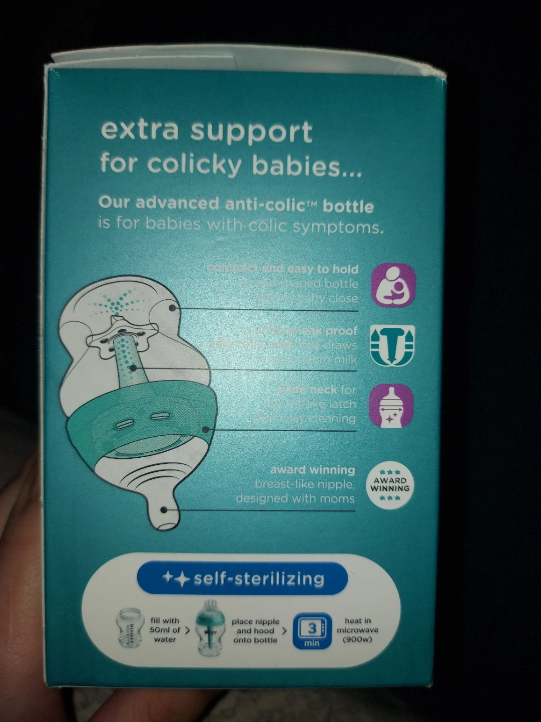 Tommee Tippee's advanced anti-colic bottles help ease discomfort from colic, gas, and reflux. Superior performance tackles colic symptoms in 95% of babies. Bottles are BPA, BPS, and phthalate free. Comes with a slow-flow, 0m+ nipple. Brand new in box