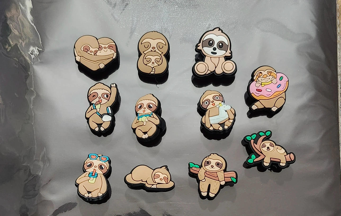 These areadorable sloth-themed charms. They're made of durable PVC material. These charms are perfect for personalizing shoes