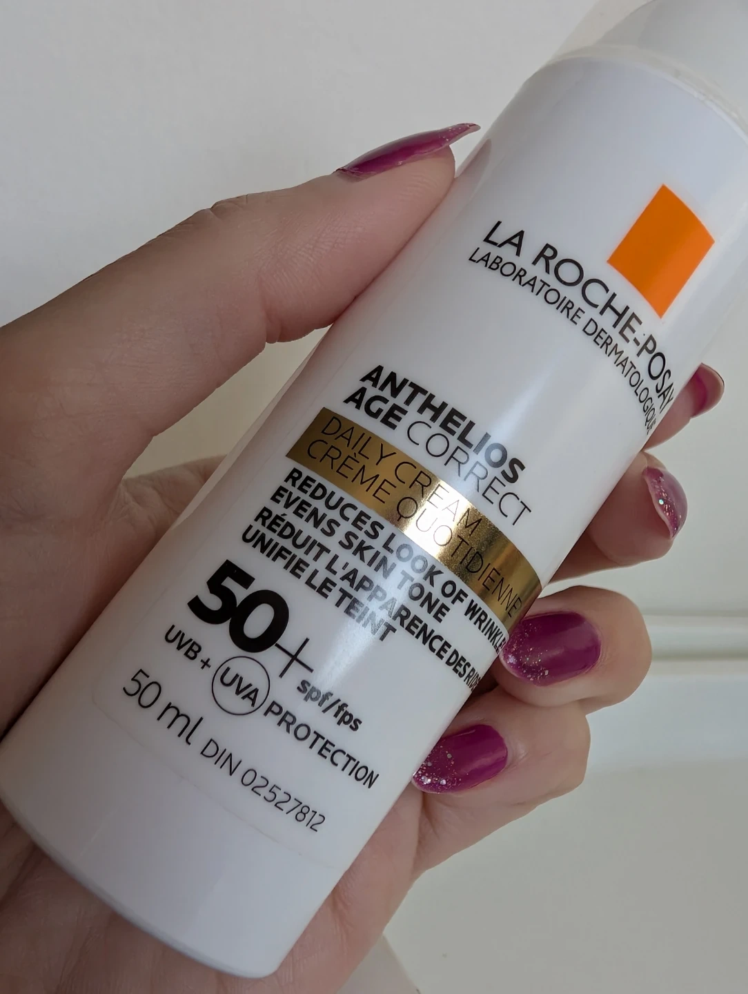 La Roche-Posay Anthelios Age Correct Daily Cream. Daily cream with SPF 50+ for UVA/UVB protection. Reduces the look of wrinkles and evens skin tone. 50 ml size.
