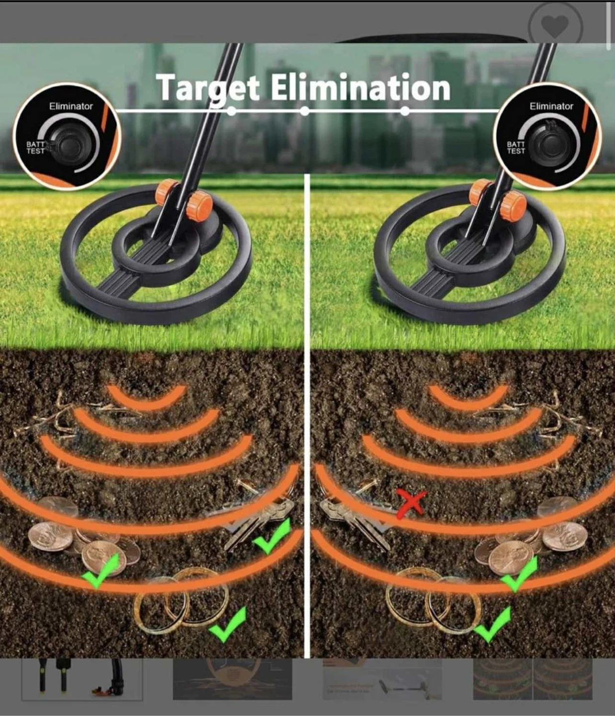 TARGET ELIMINATION: By turning the right knob on the control box clockwise, you can eliminate different metals one by one without external interference.