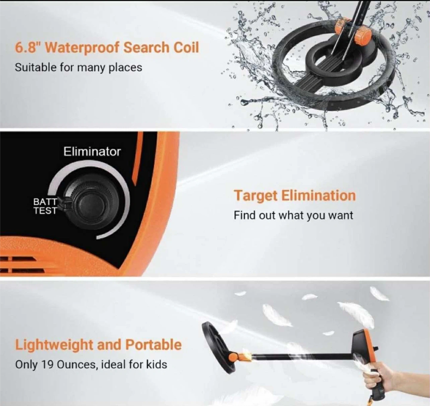 EASY TO CARRY: The metal detector only weighs 19 ounces, which is ideal for kids to carry and go detecting around. Meanwhile the handle is ergonomic, which will reduce the searching fatigue and bring more fun and conveniences during the treasure hunting.